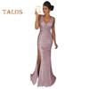 Ощутите очарование этого облегающего платья с пайетками, сексуального V-образного выреза и без рукавов, украшенного сверкающими акцентами из пайеток, которые придадут нотку гламура любому случаю.