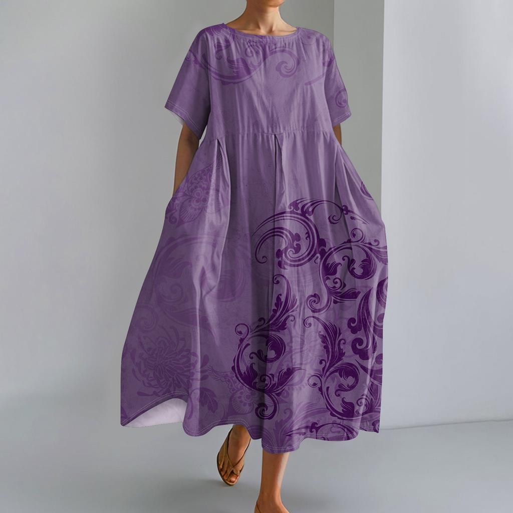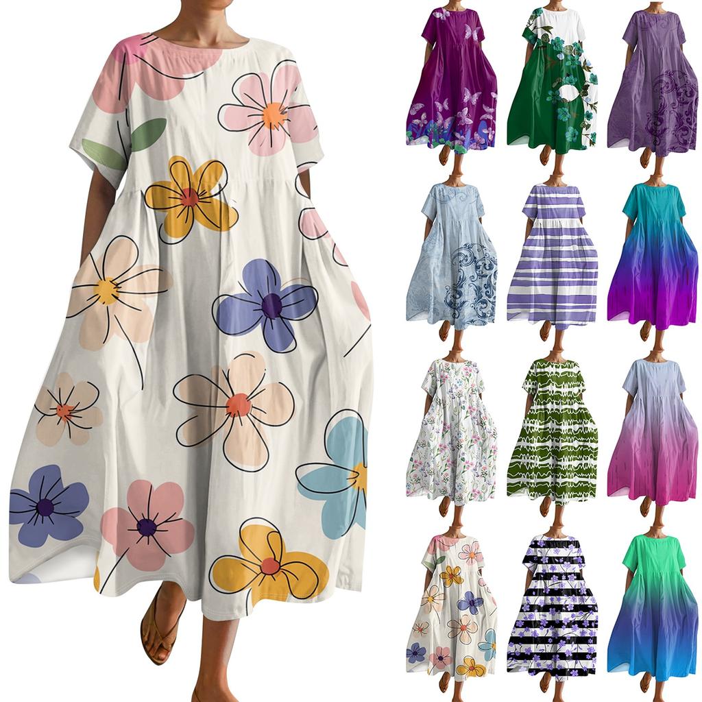 Женское модное свободное платье с большим карманом и круглым вырезом с градиентным принтом и короткими рукавами