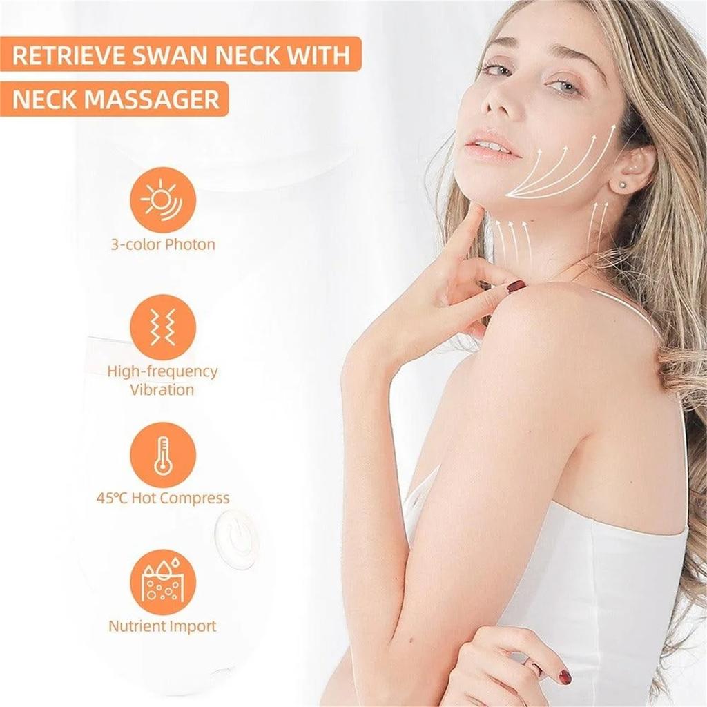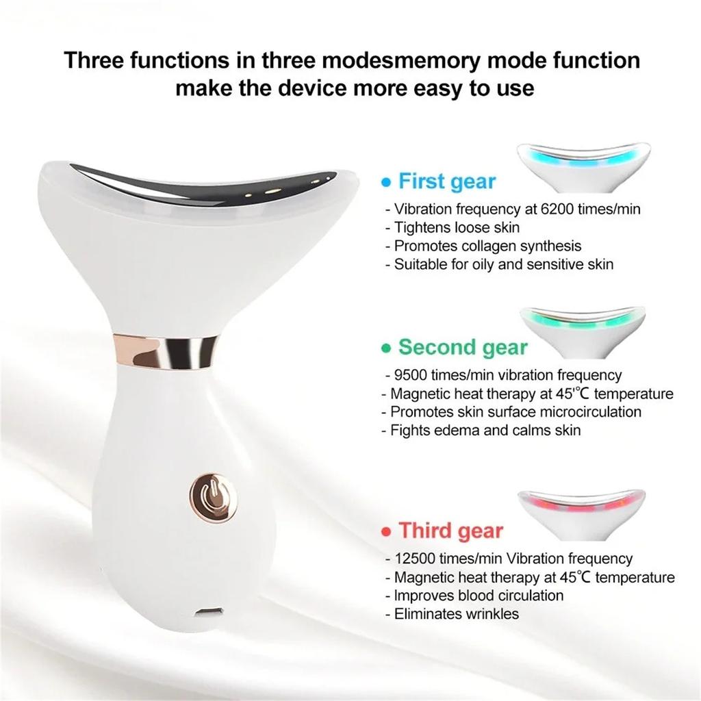 Массажер для лица для подтяжки лица, массажер для шеи, 3-цветный светодиод, омоложение кожи лица, косметическое устройство для лица и шеи, инструменты для ухода за кожей против морщин