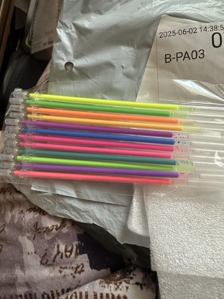 Доставка 2 недели , немного разочарована что они не такие как обычные очень тонкие , держать неудобно, многие цвета похожи , для сравнения стержень от шариковой ручки, есть цвета -металик