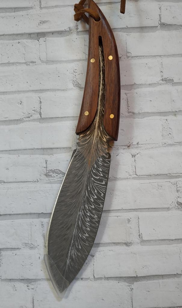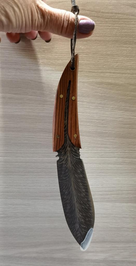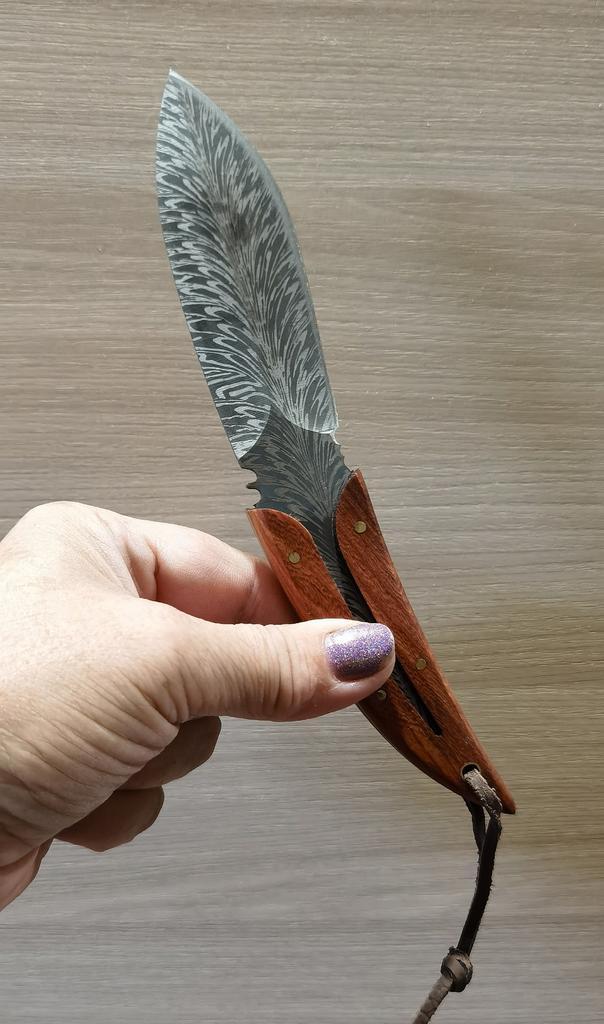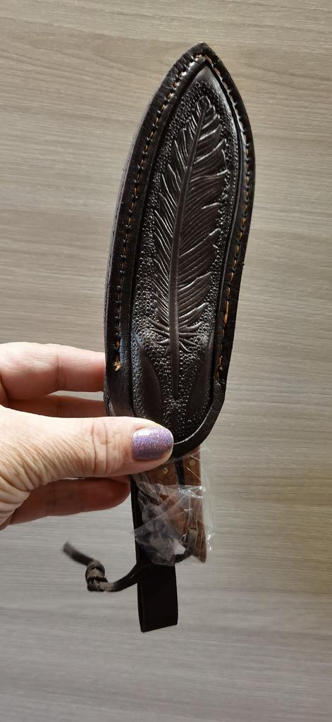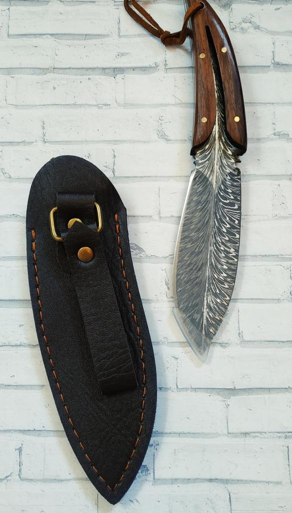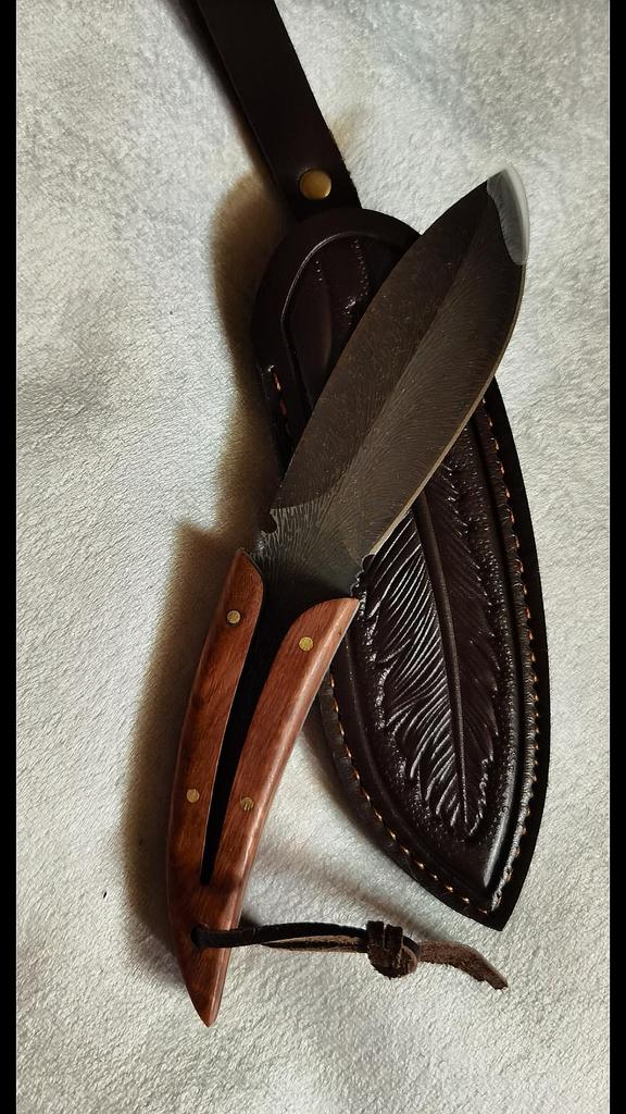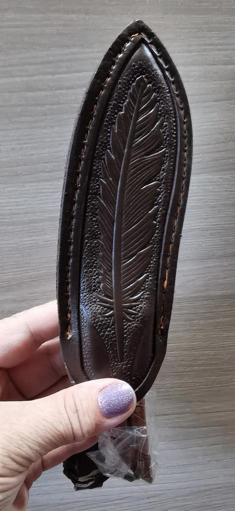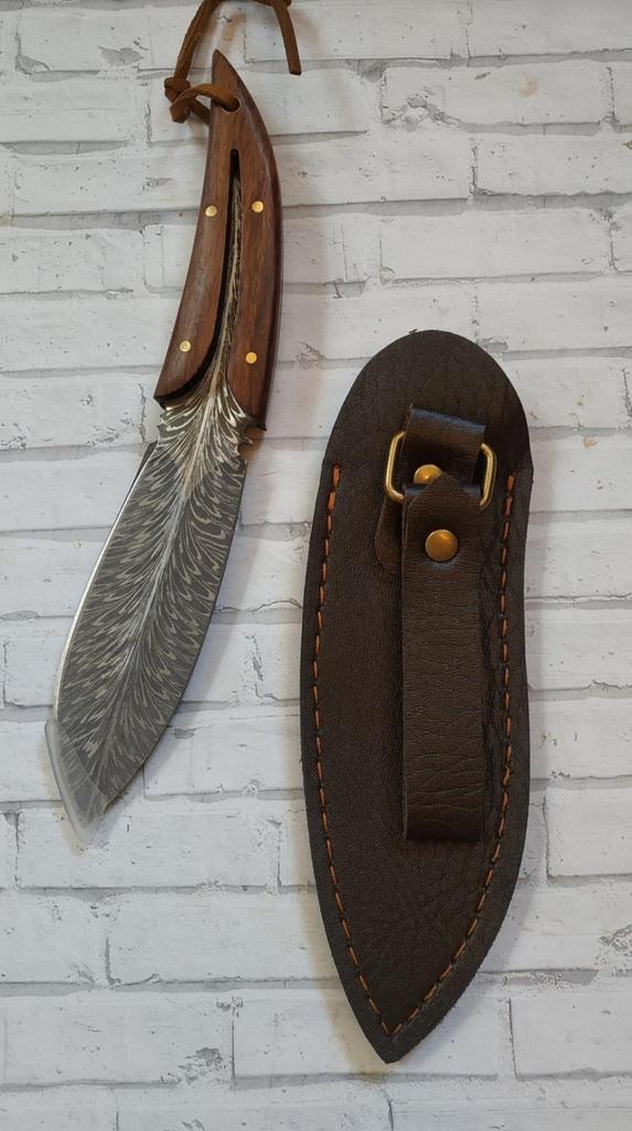 🤗🤗🤗ВСЕМ ПРИВЕТ. 🙌 Заказ шёл месяц в сборной посылке . 🔪В заказе оригинальный, необычный и очень красивый Нож в чехле в виде пера птицы. Пришёл в картонной без повреждений Нож был в чехле, на острие защитная насадка. Длина ножа 20 см Длина лезвия 9,5 см Ширина лезвия 3,5 см Чехол очень похож на кожаный, на нём выдавлен красивый рисунок, есть петля для ремня. Сам нож цельнометалический , лезвие переходит в ручку. Лезвие из нержавеющей стали. Ручка ножа из дерева, фиксируется на клёпки. Заточен очень остро, пользоваться таким нужно внимательно и осторожно. 🔪Покупкой очень довольна. 🔪Продавца и товар рекомендую. ВСЕМ УДАЧНЫХ ПОКУПОК. 👍👏🖐️🤗