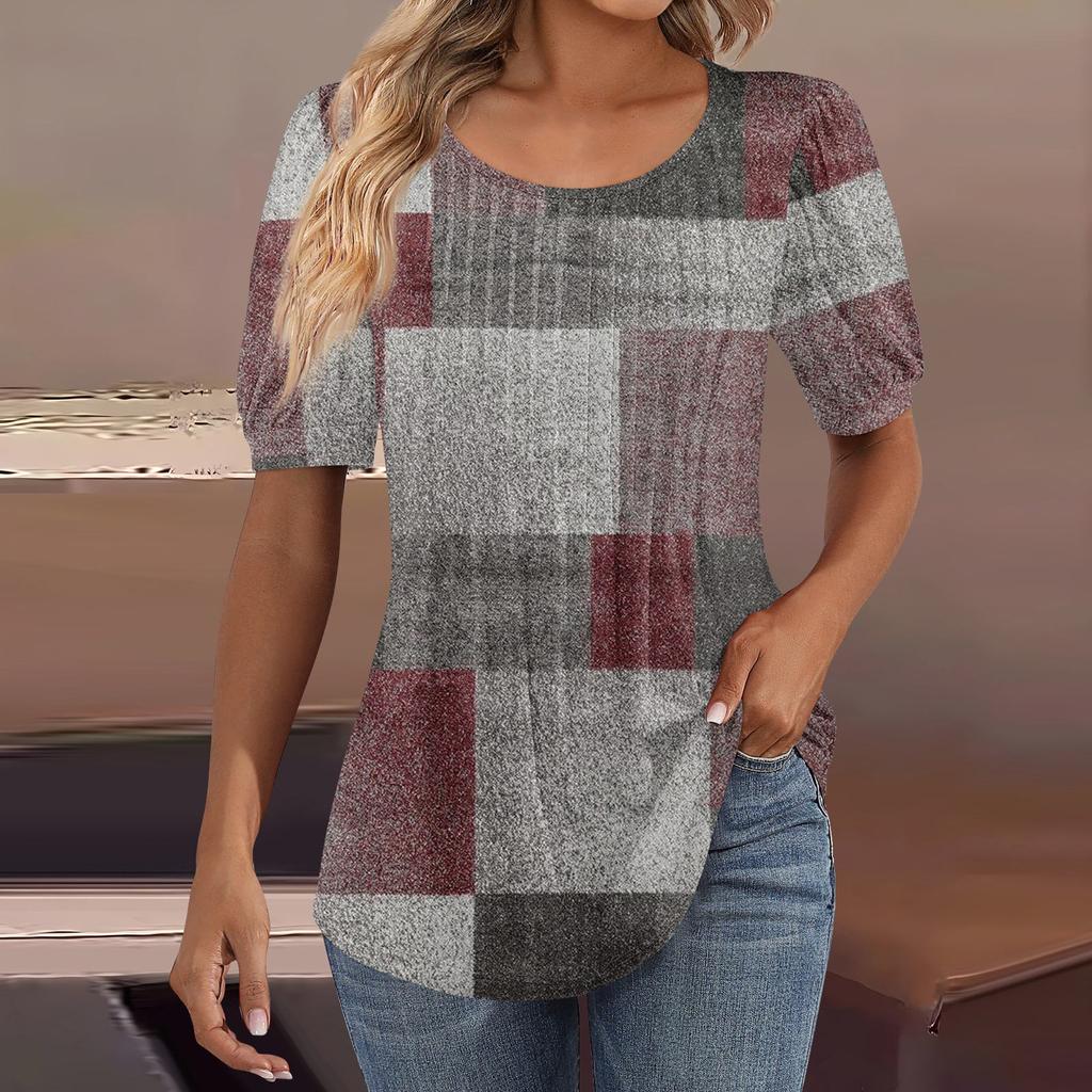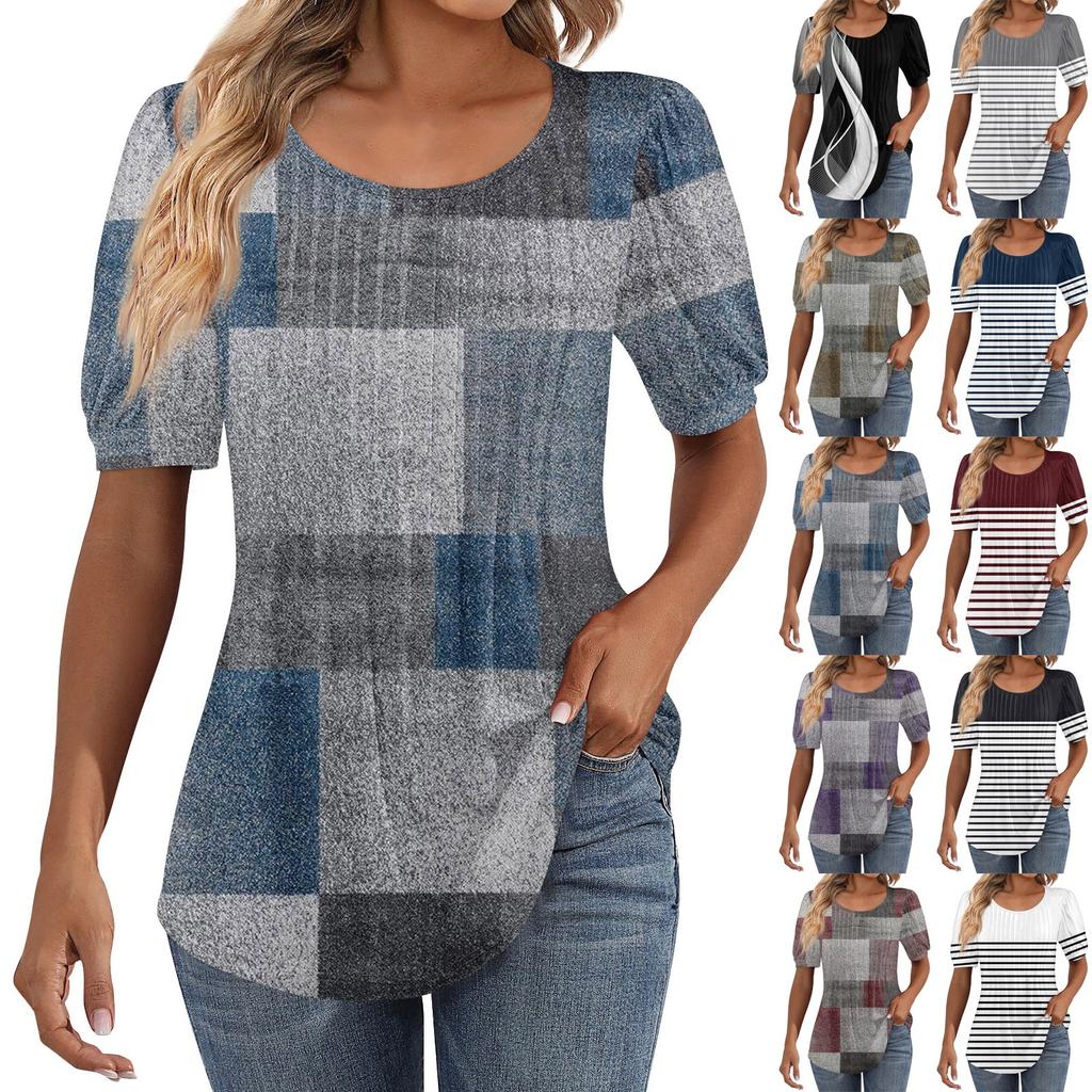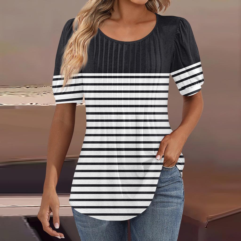 Женские пышные туники с короткими рукавами, топы, плиссированные блузки с воротником, повседневные свободные весенне-летние футболки