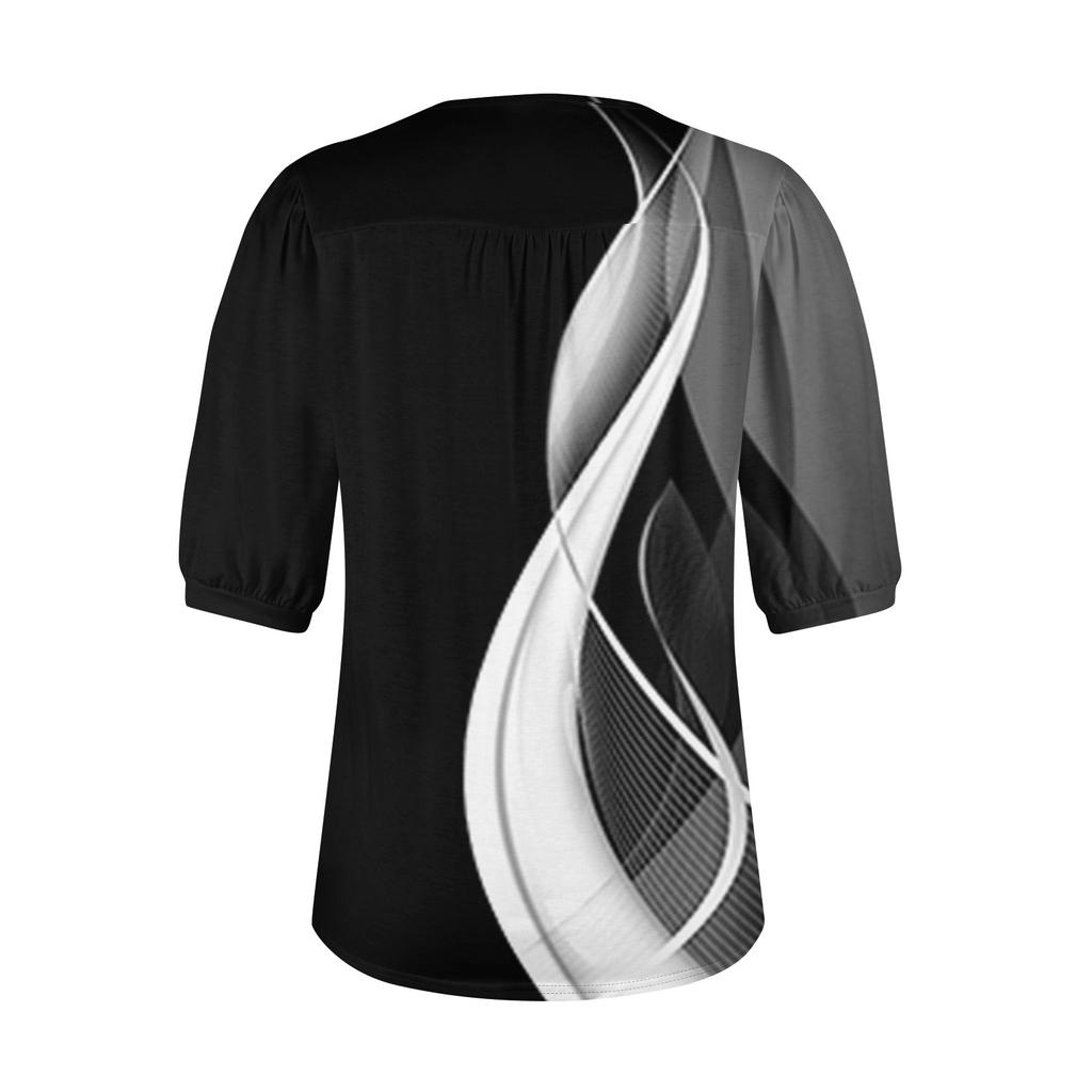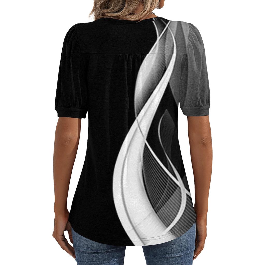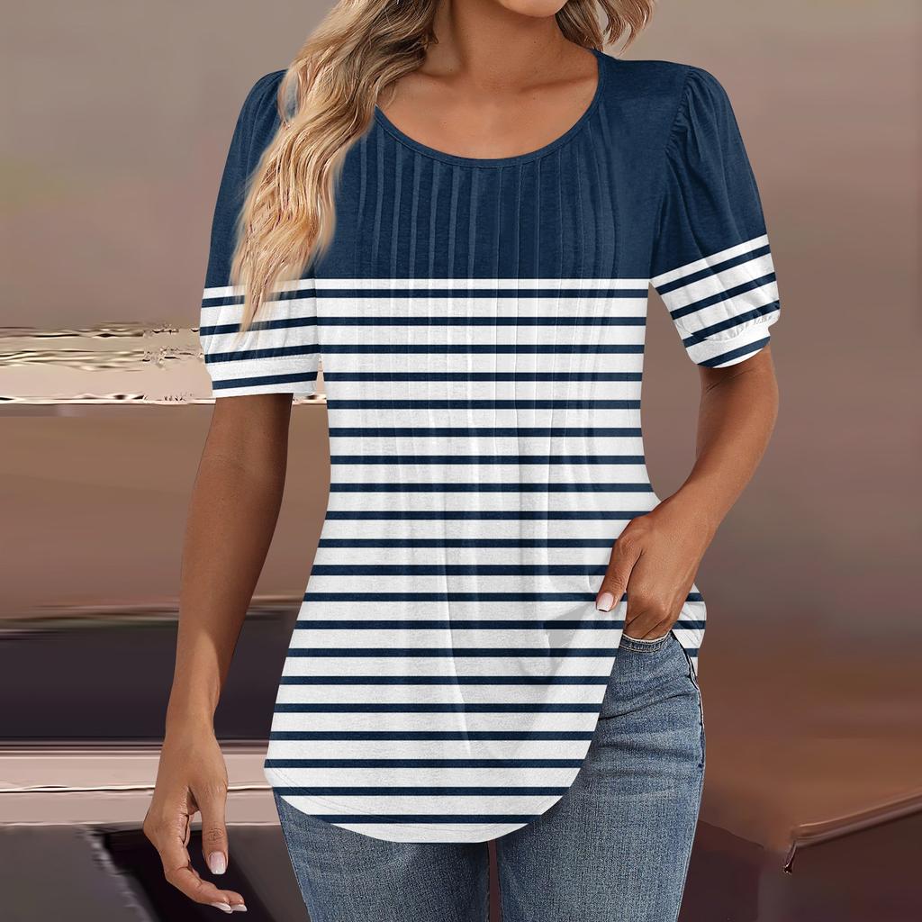 Женские пышные туники с короткими рукавами, топы, плиссированные блузки с воротником, повседневные свободные весенне-летние футболки