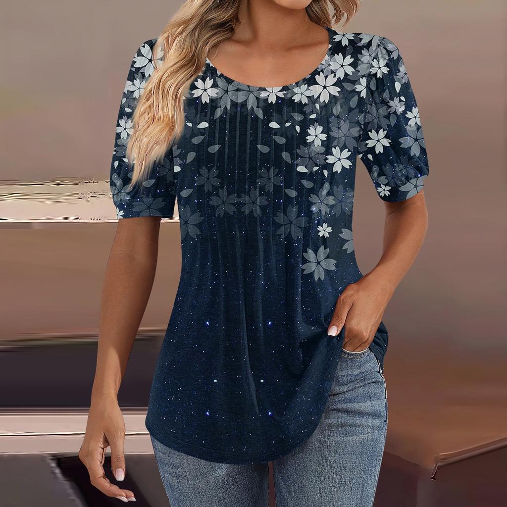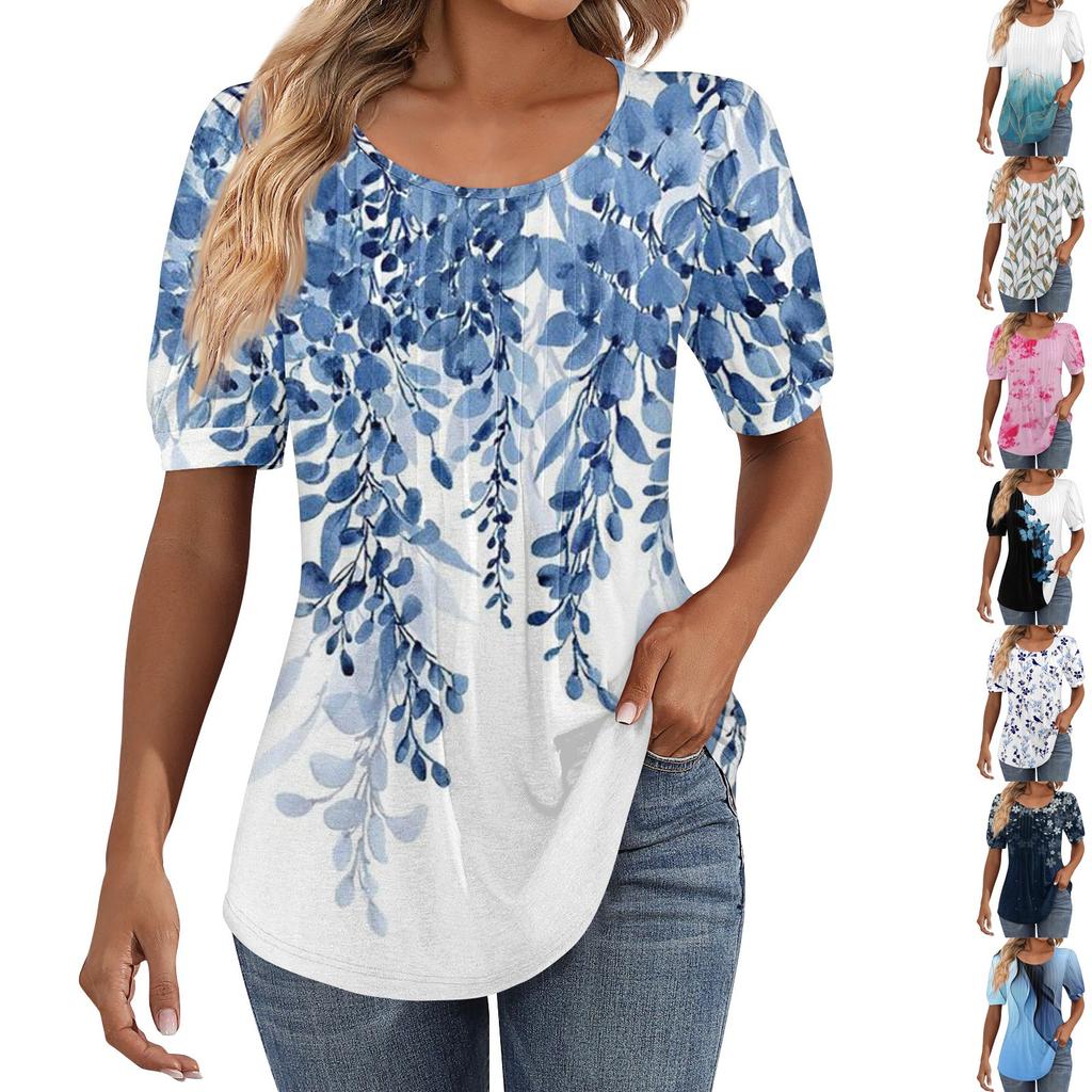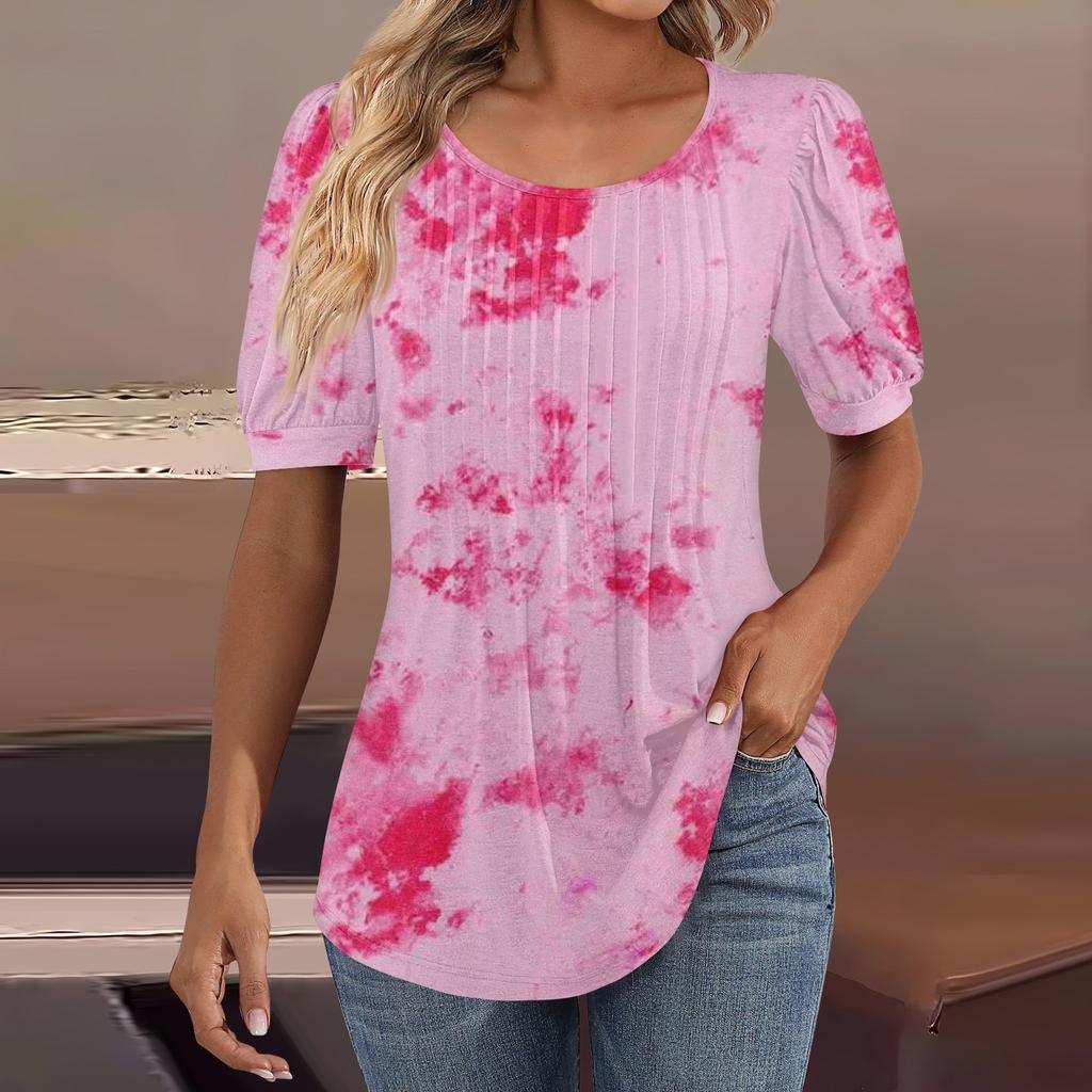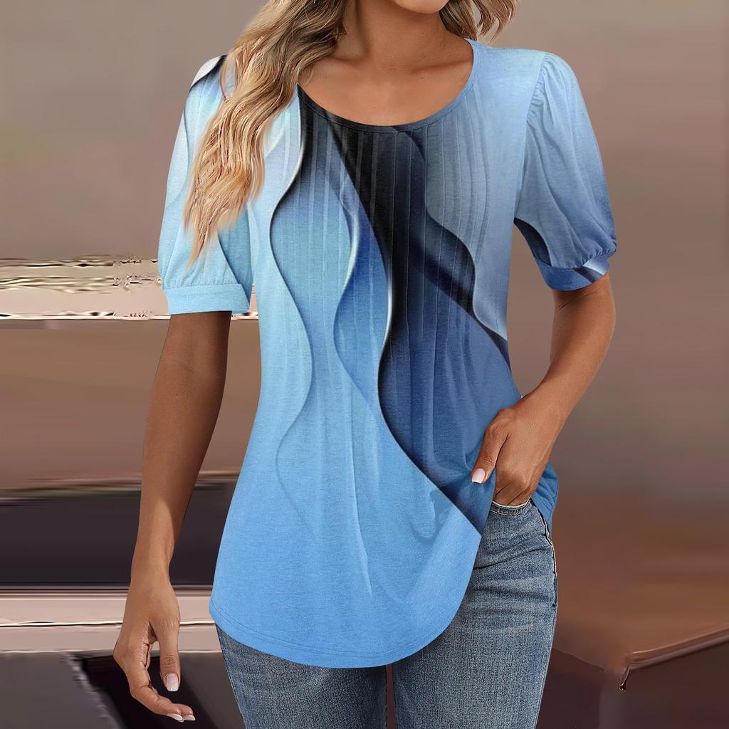 Женские пышные туники с короткими рукавами, топы, плиссированные блузки с воротником, повседневные свободные весенне-летние футболки