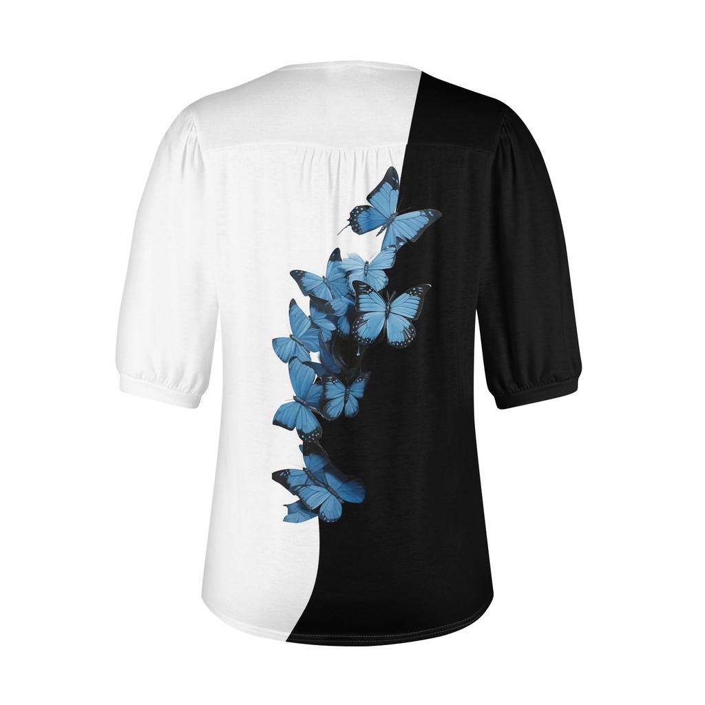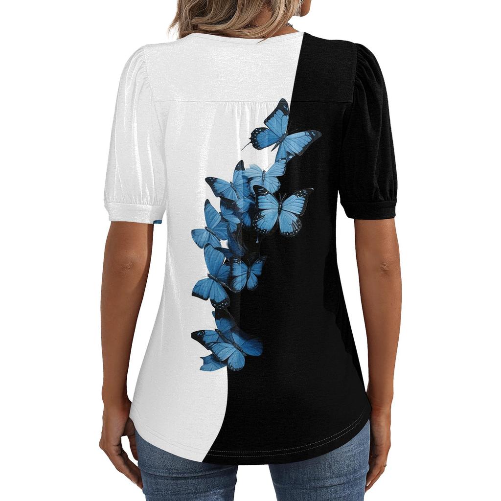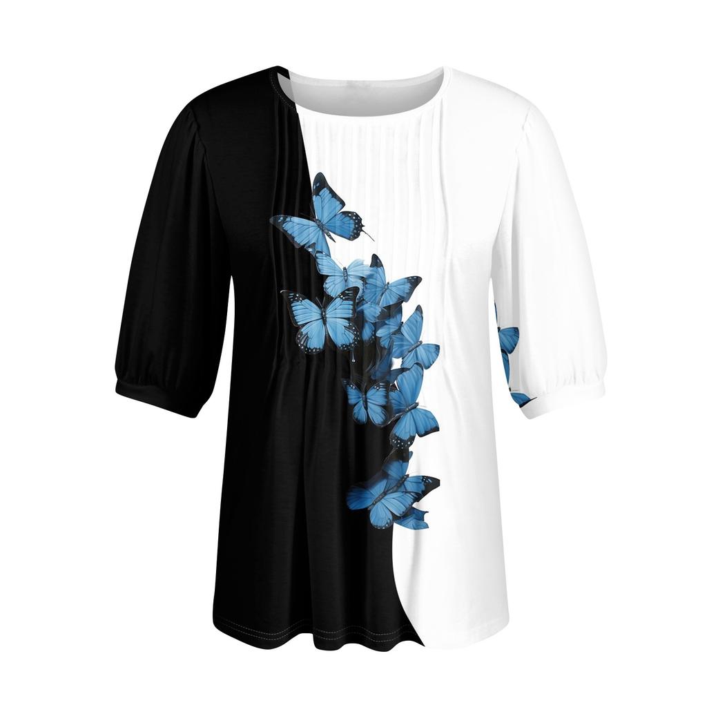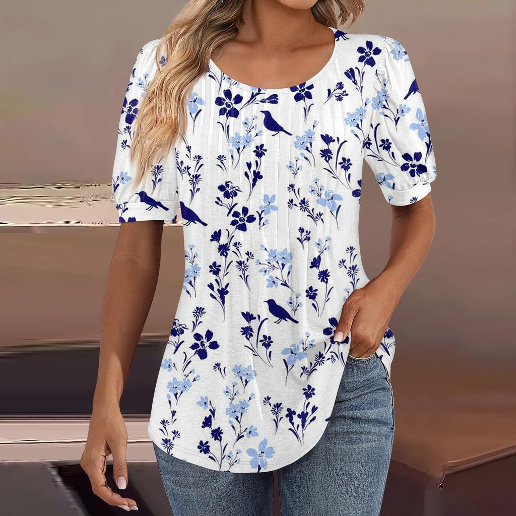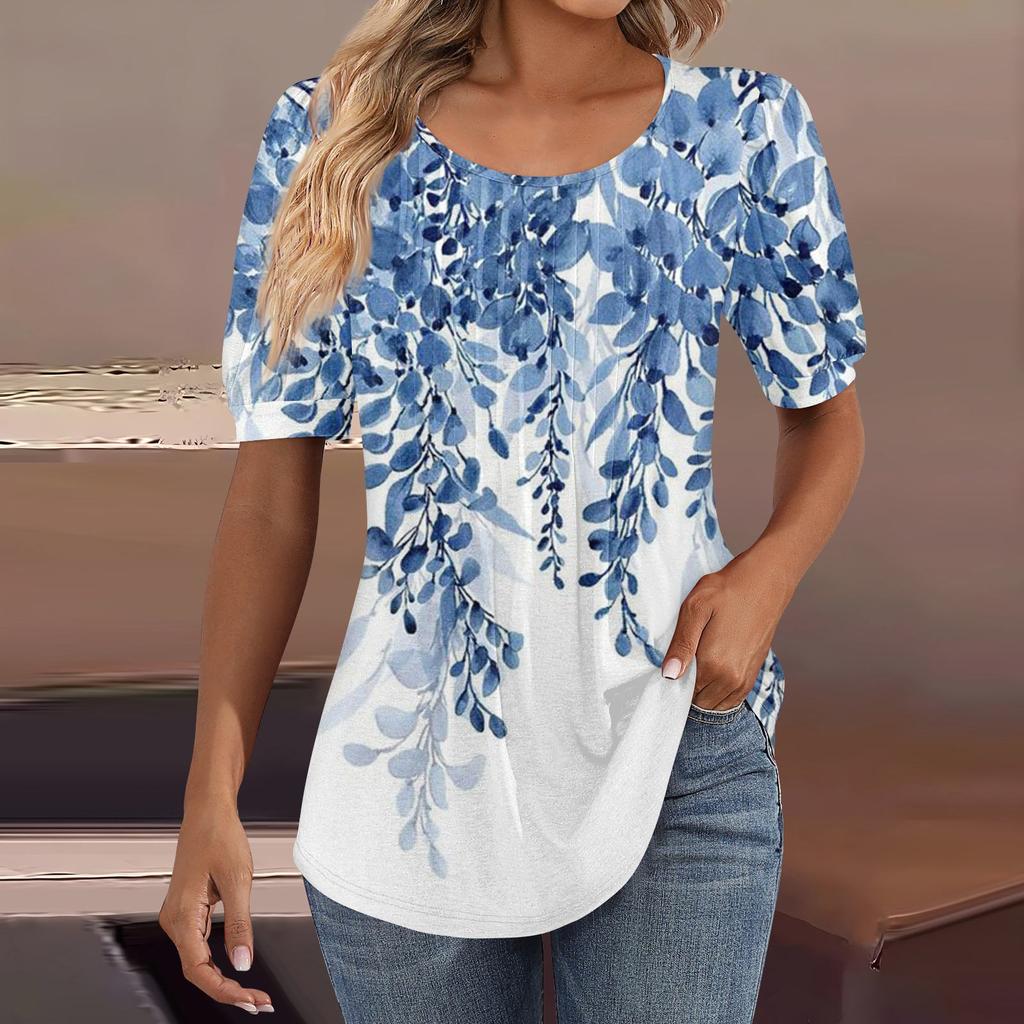 Женские пышные туники с короткими рукавами, топы, плиссированные блузки с воротником, повседневные свободные весенне-летние футболки
