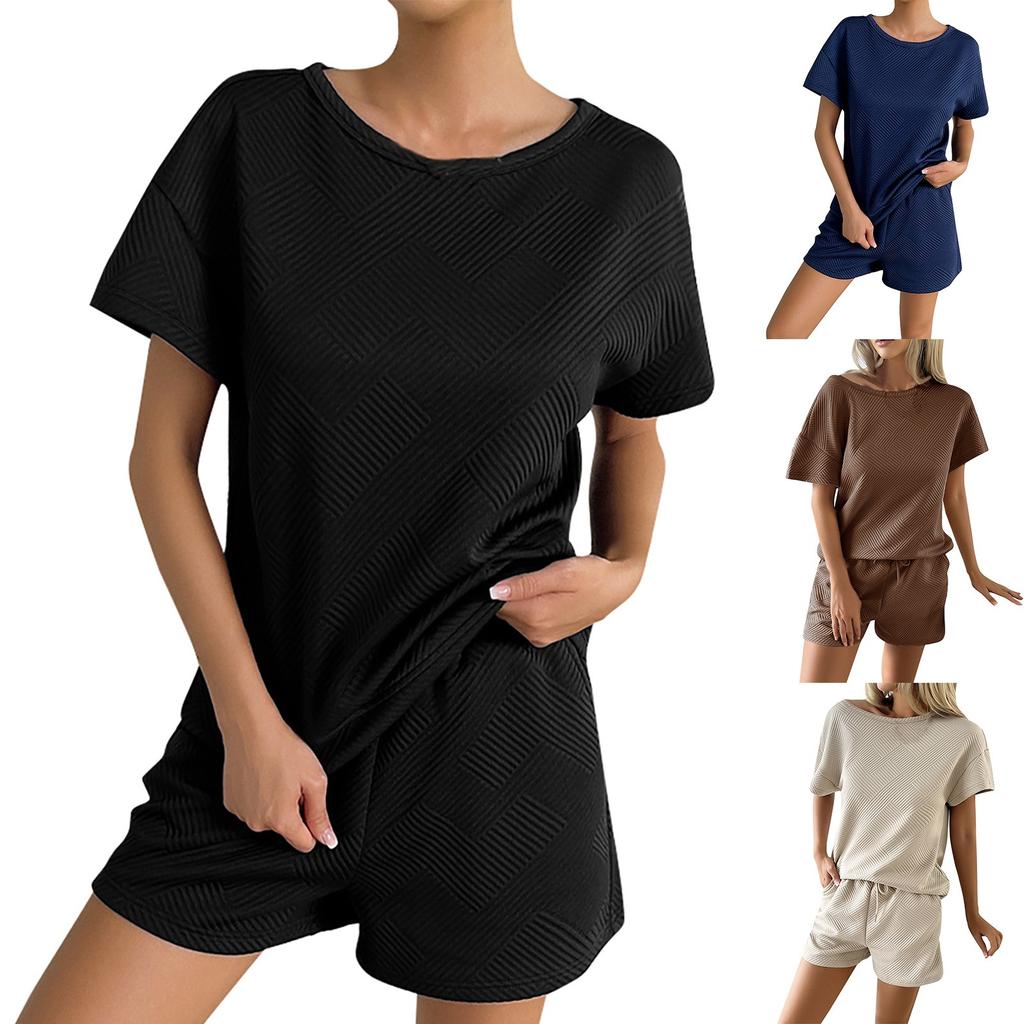 Женские летние однотонные топы и шорты с круглым вырезом, повседневный комплект из двух предметов — купить товар онлайн с бесплатной доставкой по всему миру!