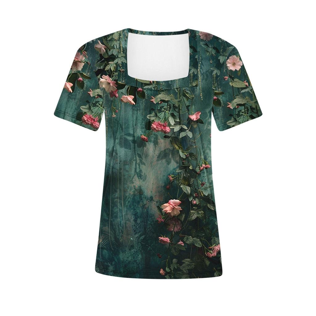 Женский повседневный плиссированный топ с короткими рукавами с квадратным вырезом и короткими рукавами с цветочным принтом