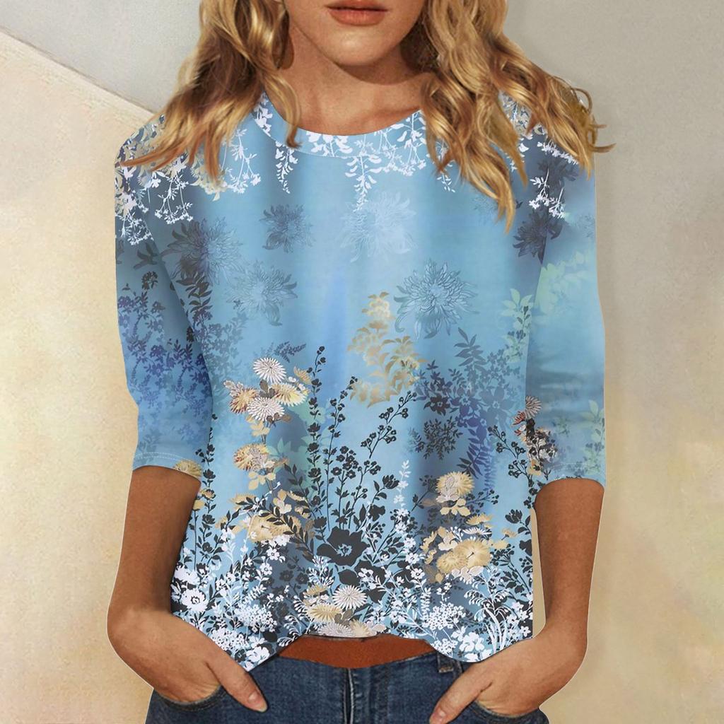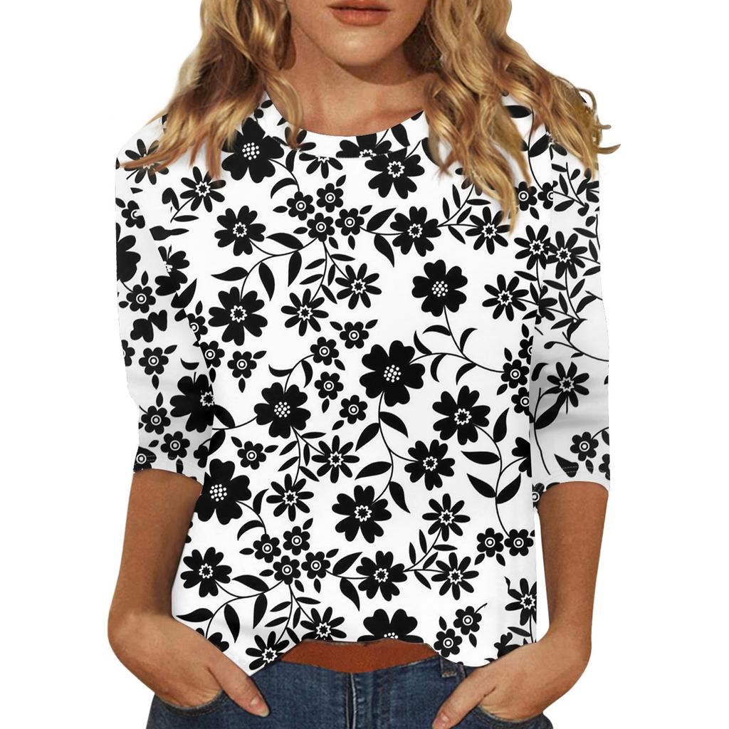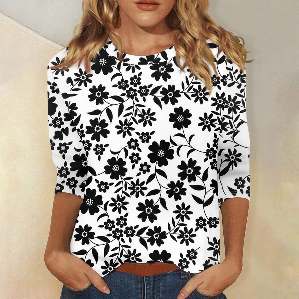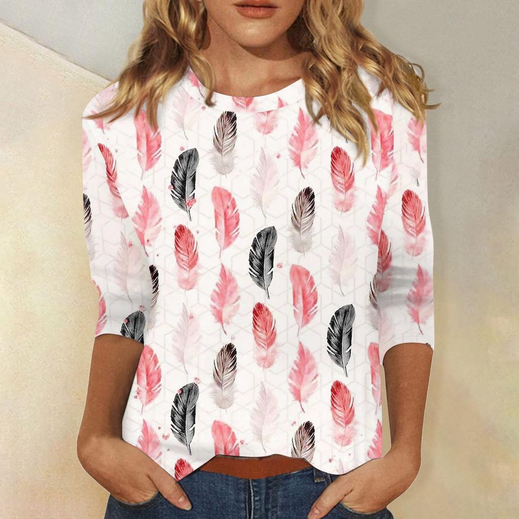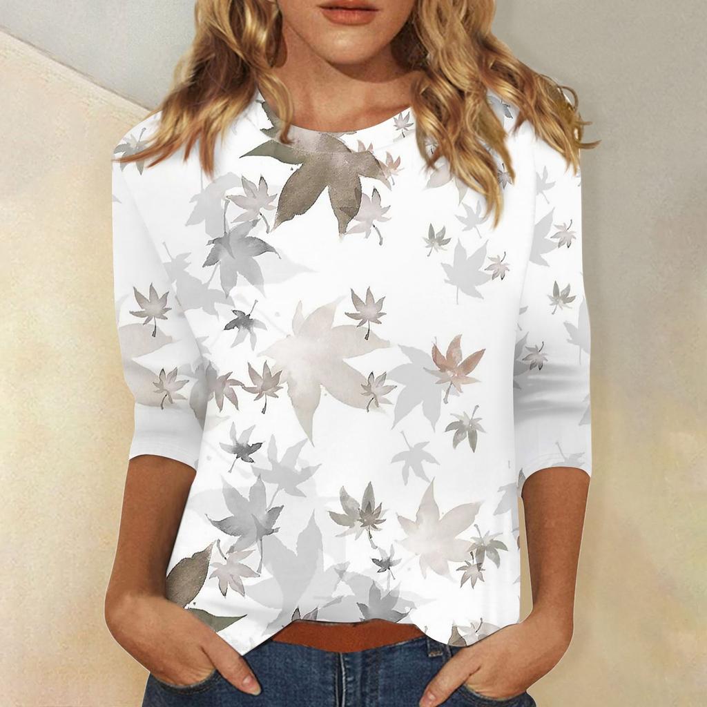 Рубашки с рукавом 3/4 для женщин, футболки с графическим принтом, блузки, повседневные базовые топы, пуловеры