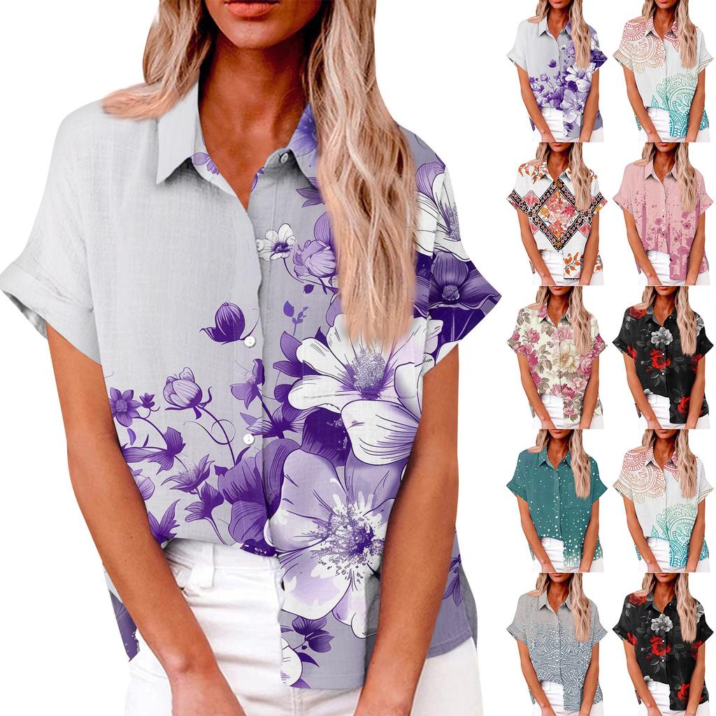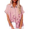 Женская модная свободная повседневная рубашка с коротким рукавом и отворотом на пуговицах, футболка с принтом, топ — купить товар онлайн с бесплатной доставкой до всему миру!