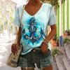 Женские футболки с принтом лодки и якоря, топ, короткий пуловер с рукавами, модная повседневная футболка большого размера с круглым вырезом, женская одежда