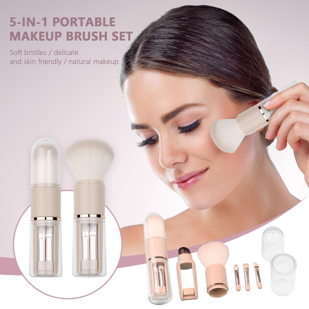 Портативный телескопический набор кистей 5-в-1 Кисть для макияжа Силиконовая головка Кисть для губ Кисть для консилера Кисть для теней для век Инструмент для красоты