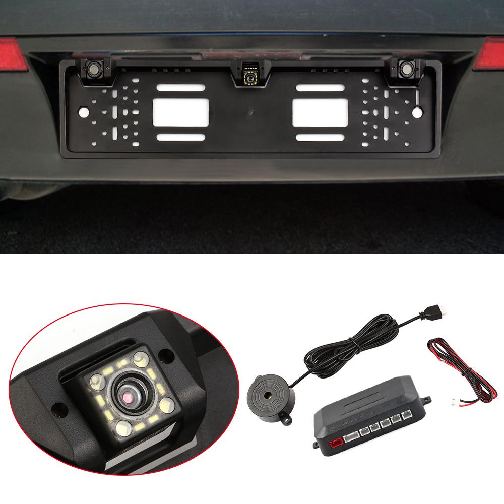 Европейская рамка номерного знака + камера заднего вида с 12 лампами + радар заднего хода 3 в 1