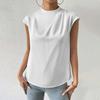 Женская повседневная элегантная атласная плиссированная рубашка с круглым вырезом, однотонный пуловер без рукавов, официальная рабочая рубашка, топ