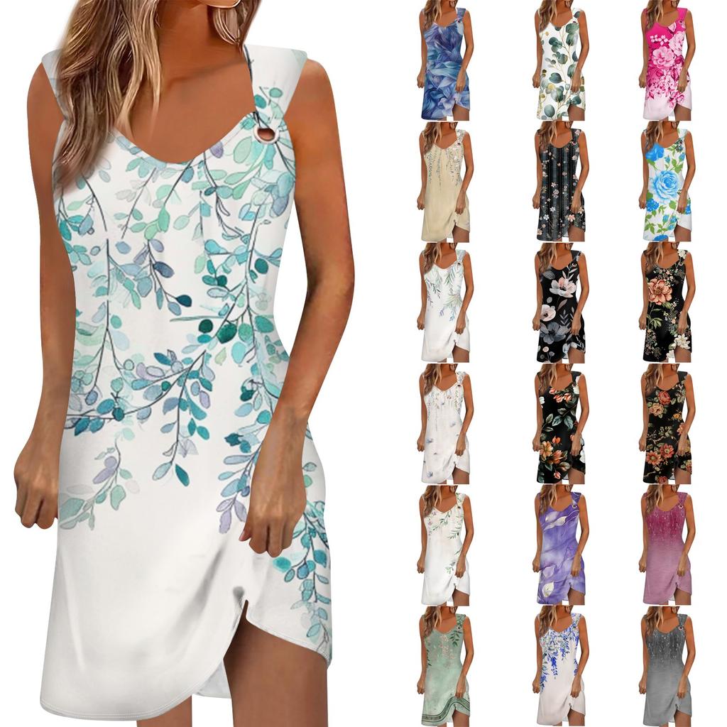 Женское повседневное платье Летнее платье Платье-комбинация Платье с рюшами на каждый день Мода на выход Мода Базовый ремень без рукавов Свободный крой