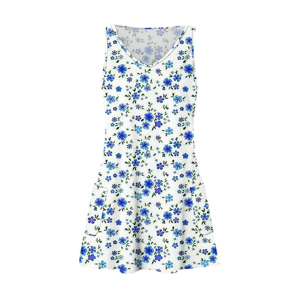 Женское повседневное летнее богемное пляжное платье с цветочным принтом и карманами, платье-майка с v-образным вырезом