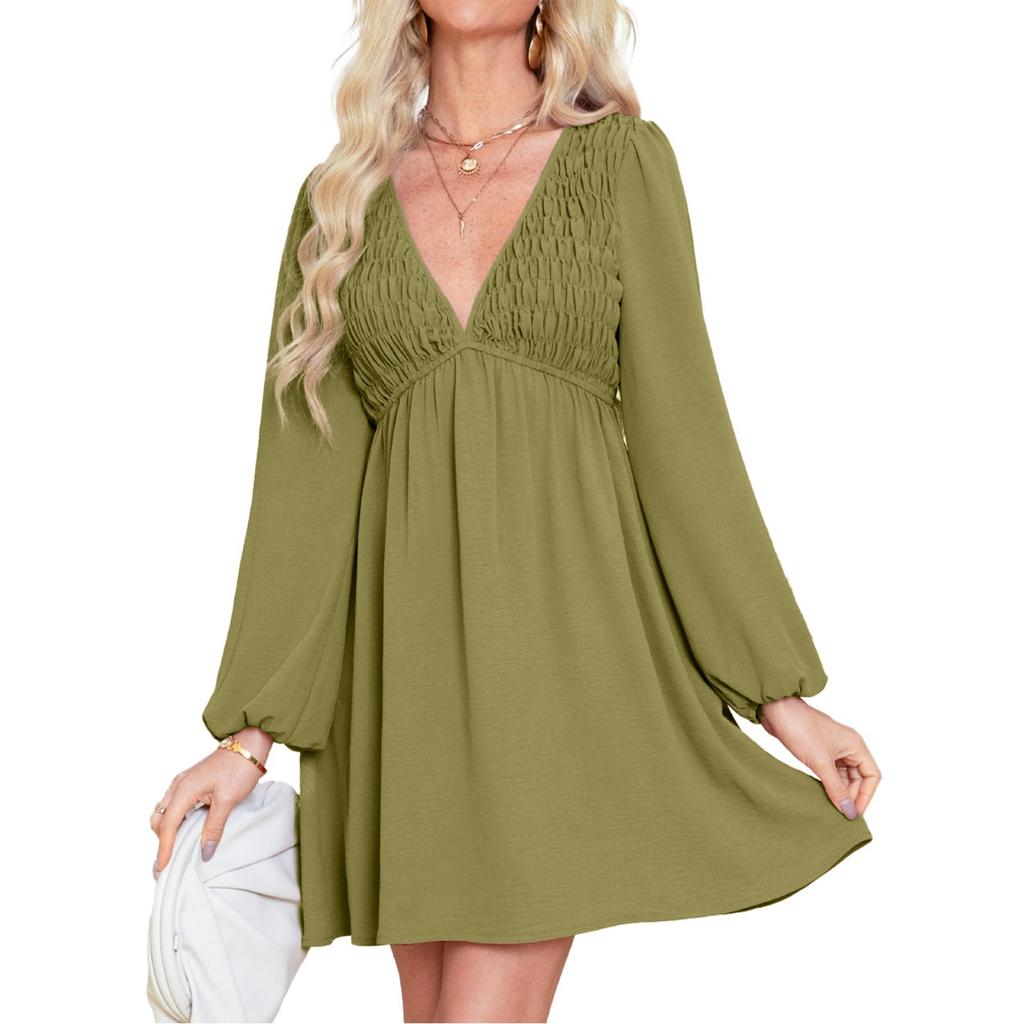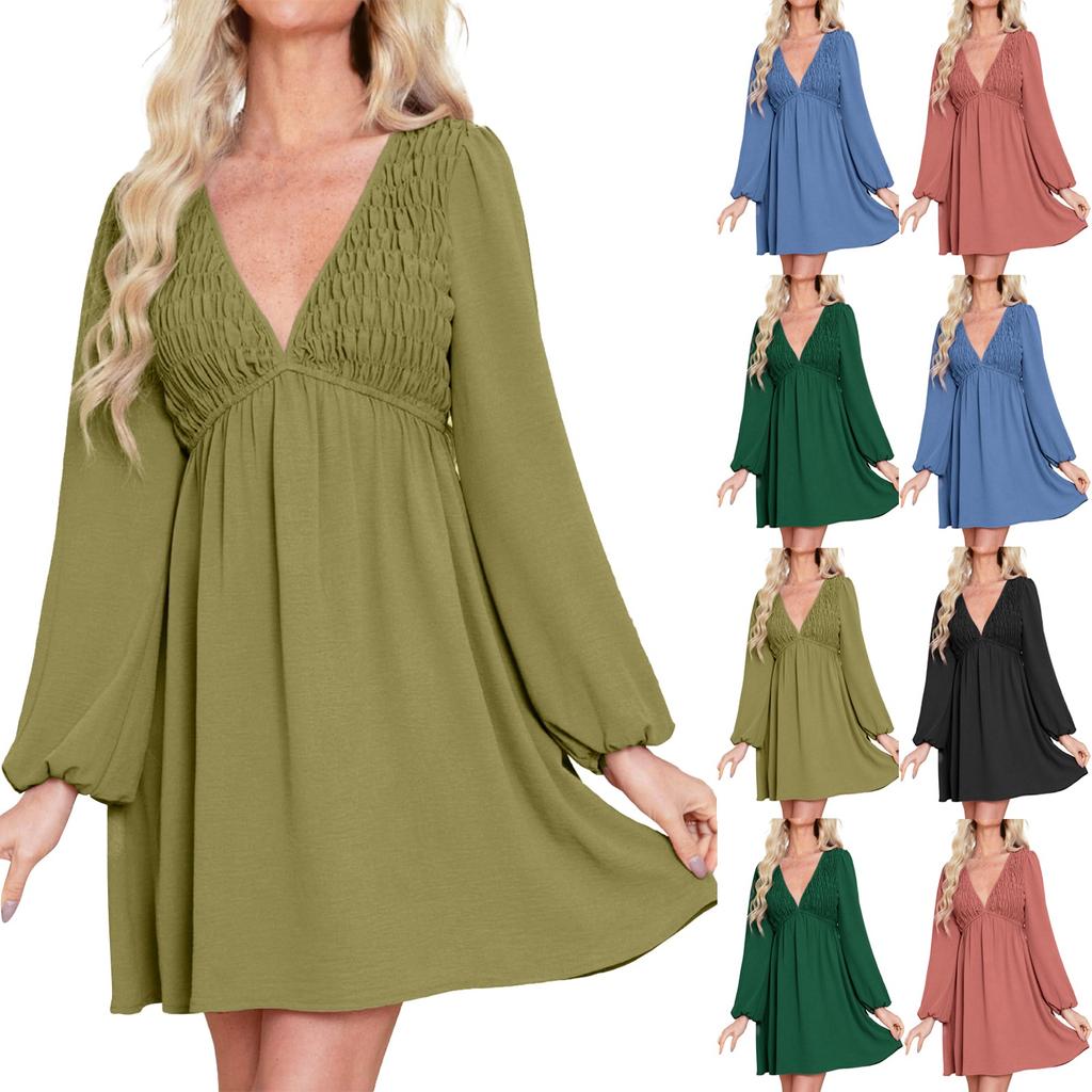 [Babydoll Fit] Эти струящиеся платья для женщин очень удобны.. Присборенный дизайн на груди обеспечивает превосходную растяжку.. Модель с v-образным вырезом имеет регулируемые крючки, которые еще больше подчеркнут вашу сексуальность и очарование.. Вам понравится, как эластичная талия придает ему такую плавную посадку.