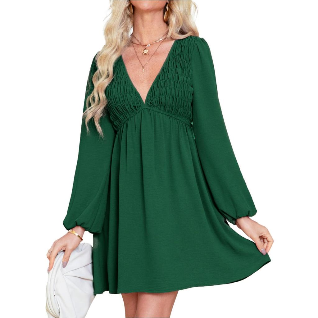 [Дизайн]Глубокий v-образный вырез, платье с длинными пышными рукавами и эластичными манжетами, присборенное платье с карманом, платье babydoll, платье в стиле бохо для женщин, повседневное платье весна-лето 2024, выпускное платье, платье для встречи выпускников, струящиеся платья для женщин, свободное платье для женщины