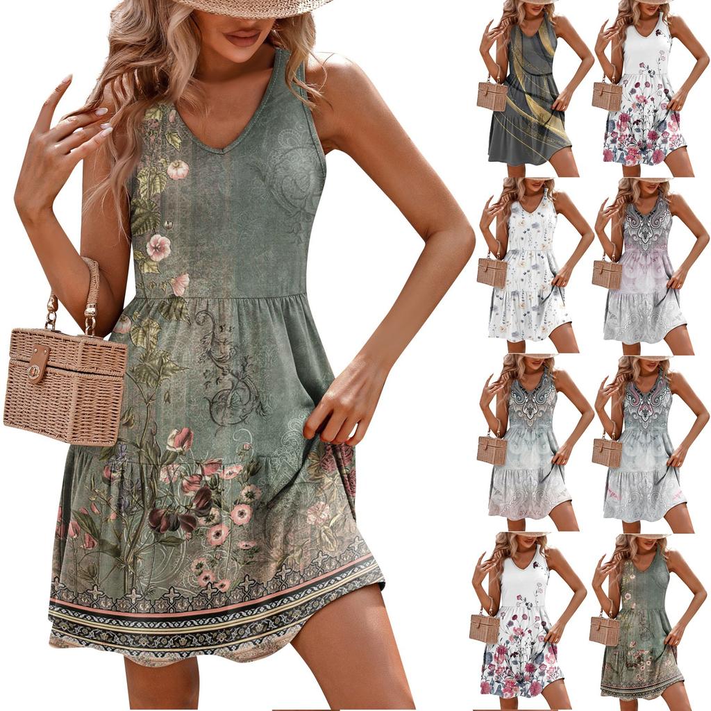 Женские летние модные повседневные платья с v-образным вырезом в стиле пэчворк без рукавов с принтом-жилетом — купить товар онлайн с бесплатной доставкой до всему миру!