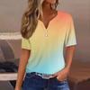 Женская повседневная футболка с v-образным вырезом и короткими рукавами, декоративная футболка на пуговицах, топ