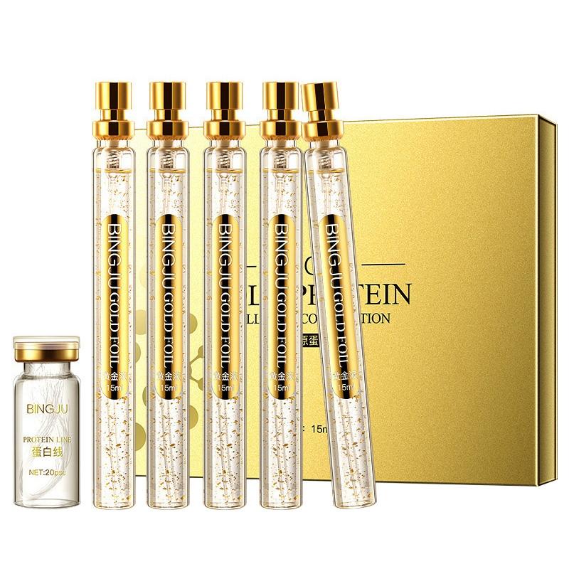 Protein Line и Gold Foil Liquid Set Сыворотка для лица Активный растворимый коллаген Шелковая нить