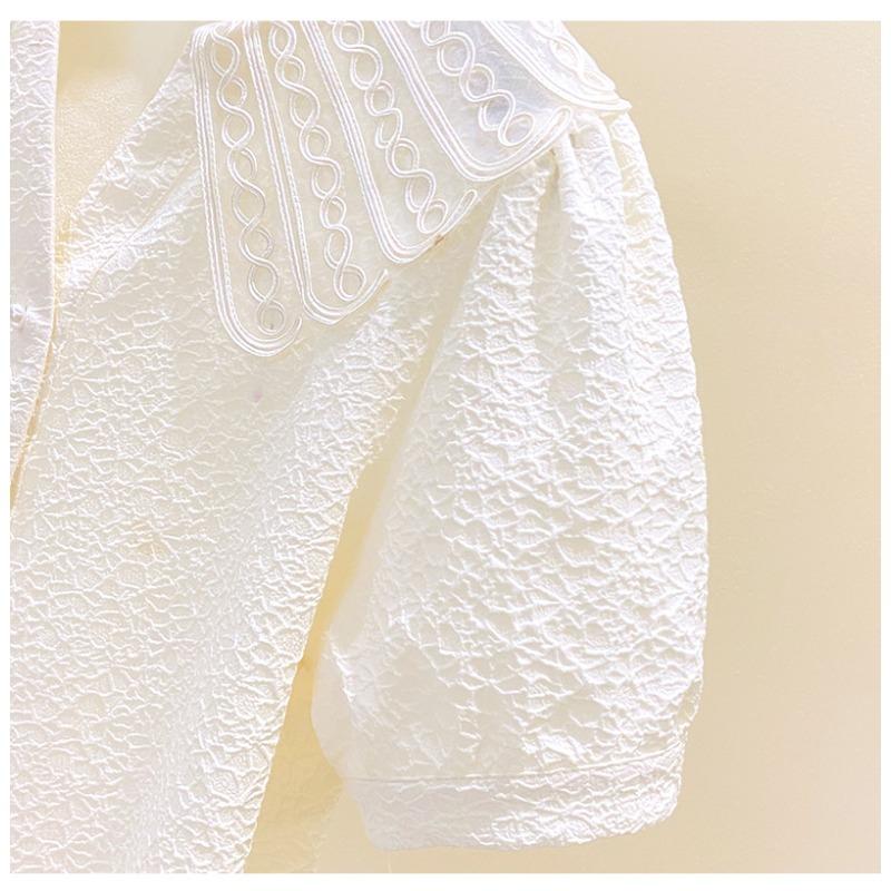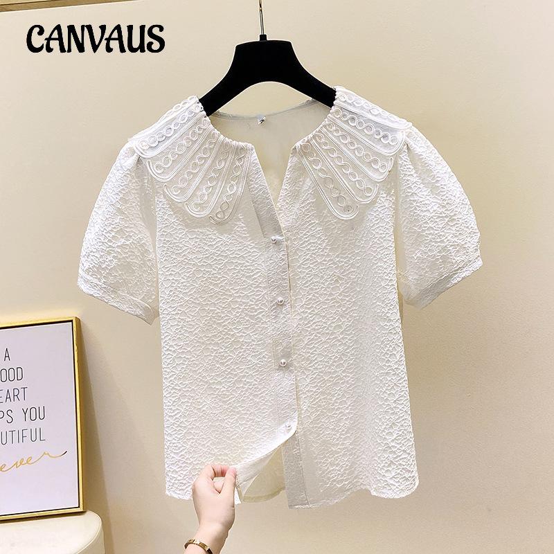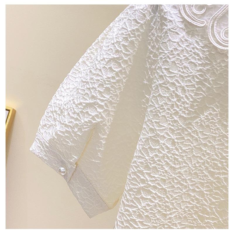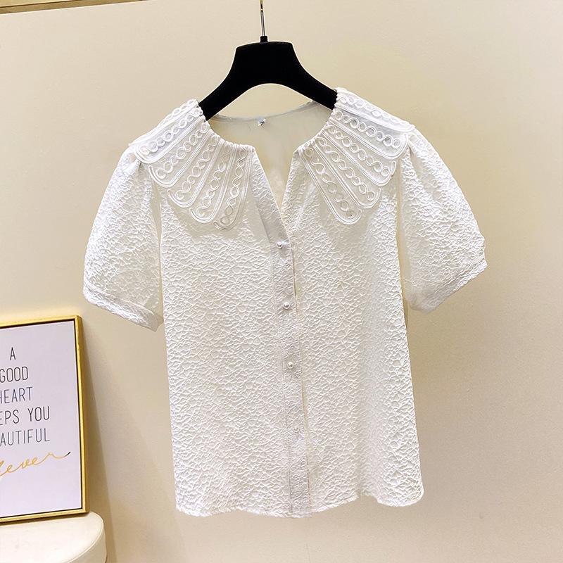 Женская рубашка больших размеров с кукольным воротником и коротким рукавом, летний винтажный жаккардовый топ