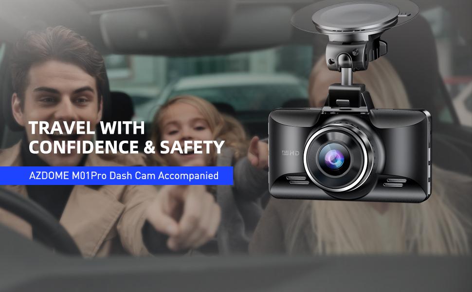 Автомобильный видеорегистратор AZDOME M01 Pro с 2 камерами переднего и заднего вида, разрешение 1080P, 3-дюймовый IPS-экран с картой памяти 64 ГБ, ночное видение, ADAS G-сенсор, круглосуточный режим парковки