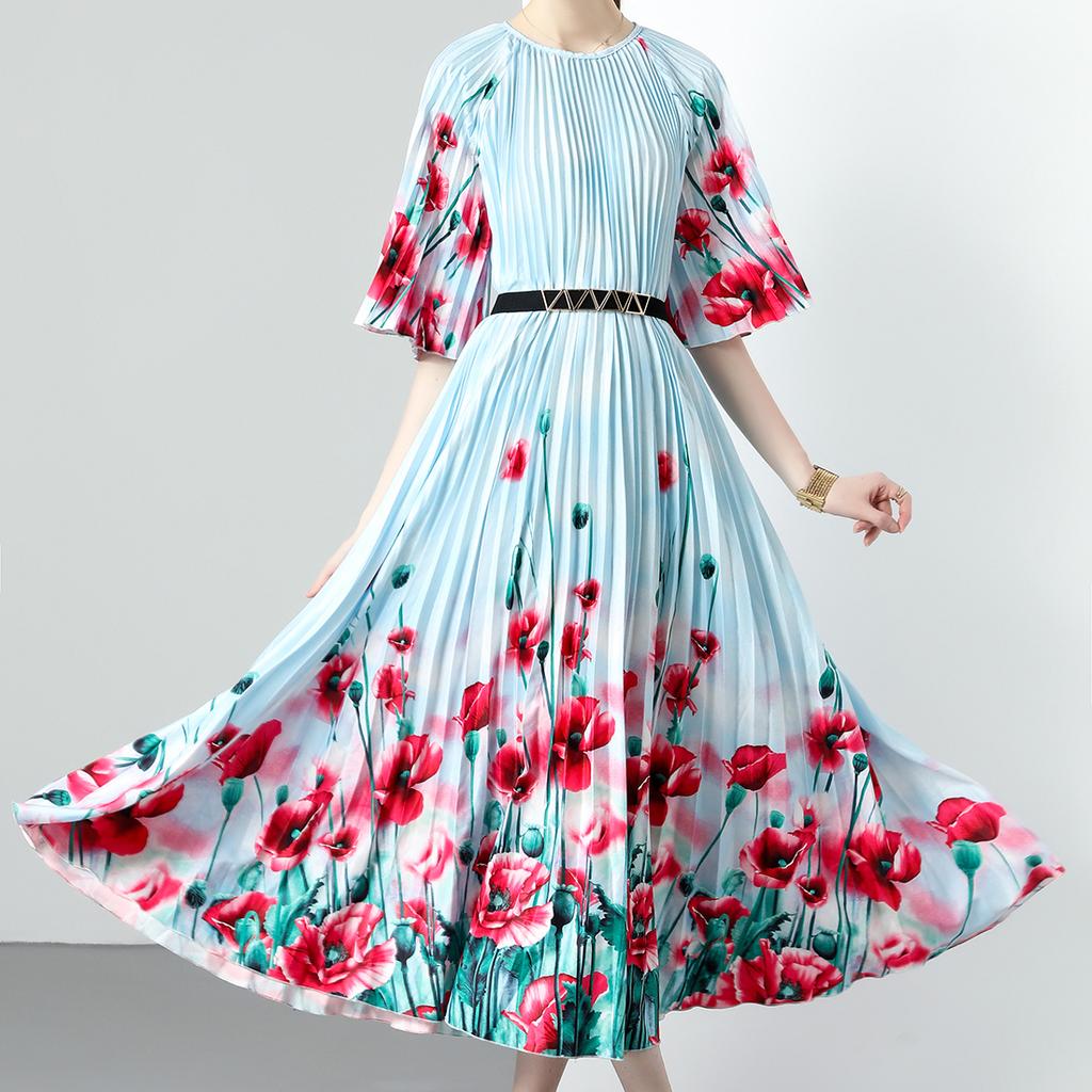 Летние женские элегантные длинные вечерние платья с розовым принтом и большими качелями с поясом