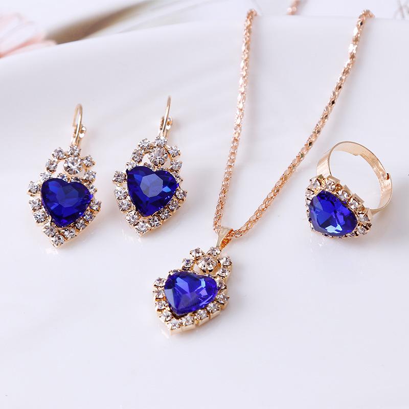 Модный женский комплект ювелирных изделий с романтическим сердцем, свадебное ожерелье, комплект колец — купить товар онлайн с бесплатной доставкой по всему миру!