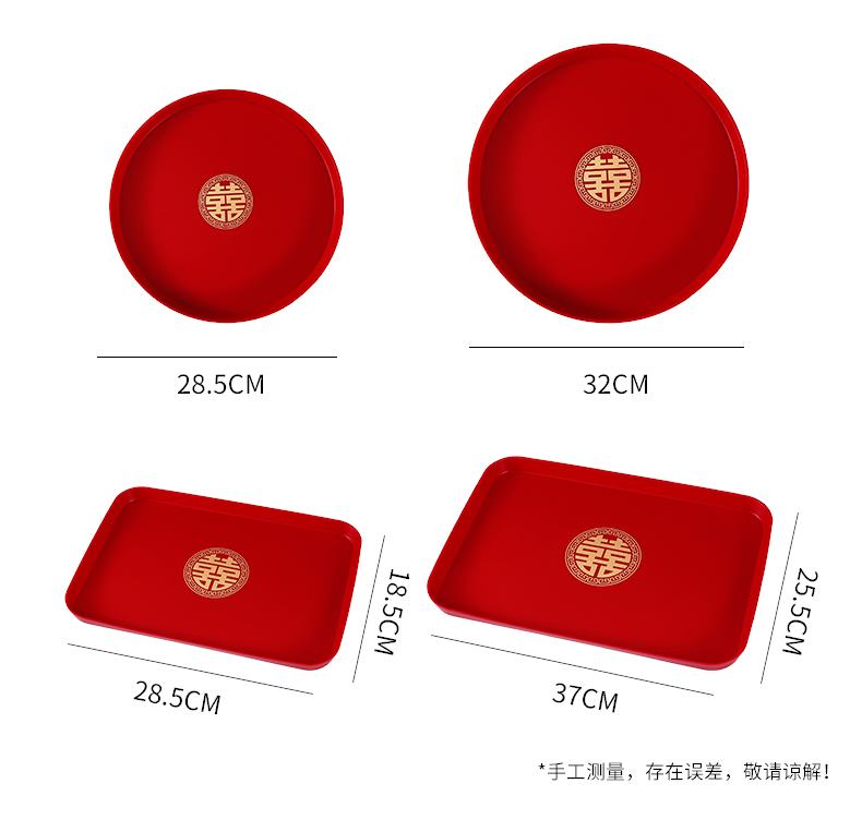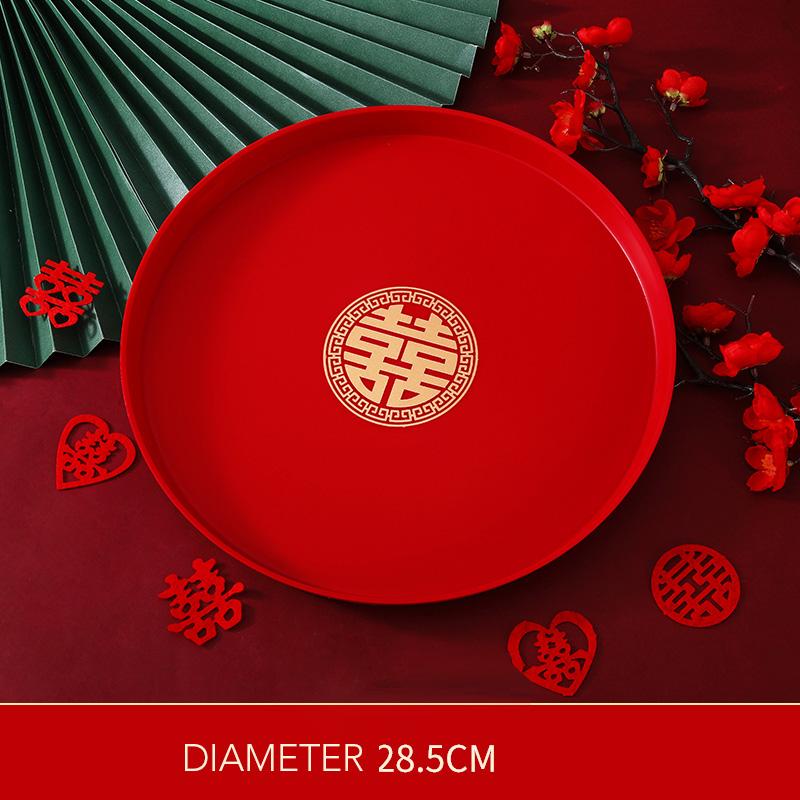 Многоразмерный китайский традиционный красный поднос Xi, пластиковый поднос для чая, кухонный поднос, хранение фруктовых закусок, свадебный банкет, праздничные принадлежности