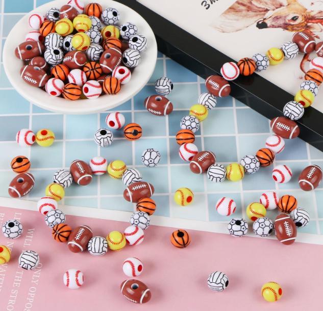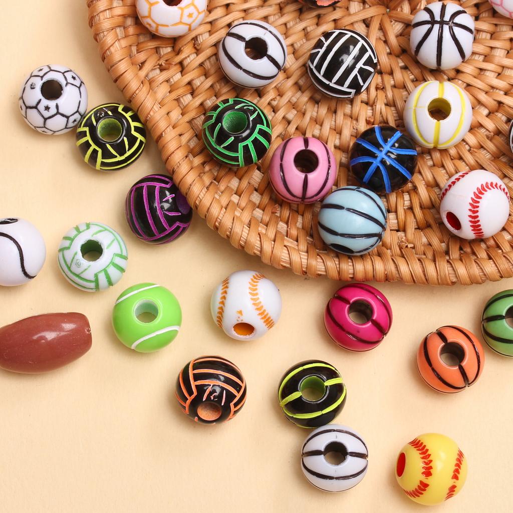 10 шт., 11 мм, подвески, баскетбольные круглые свободные бусины, футбольный мяч, акриловые бусины с отверстиями, браслеты, принадлежности для изготовления ювелирных изделий