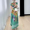 Ретро комплект, летний новый топ с короткими рукавами + плиссированная юбка с принтом, комплект из двух предметов
