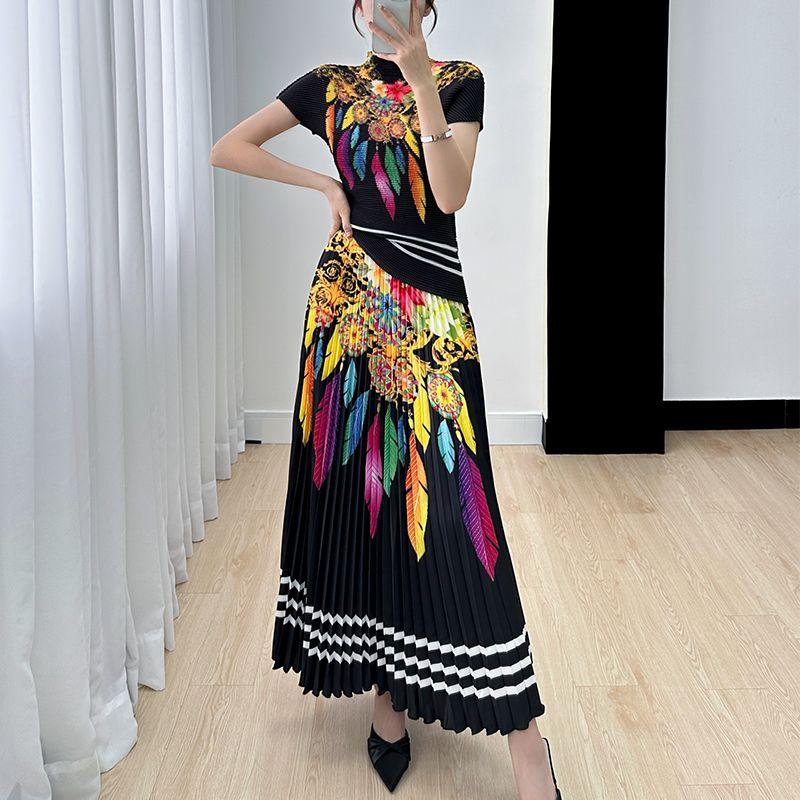 Ретро комплект, летний новый топ с короткими рукавами + плиссированная юбка с принтом, комплект из двух предметов — купить товар онлайн с бесплатной доставкой по всему миру!