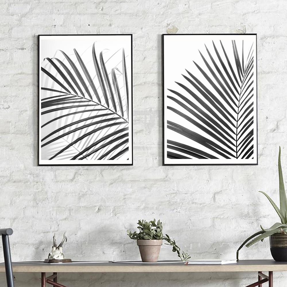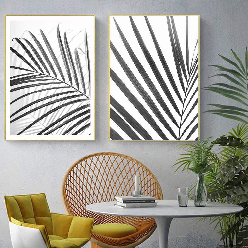 Плакат с пальмовыми листьями, скандинавский растительный арт-принт, черно-белая минималистская картина на холсте, современная настенная картина для гостиной, домашний декор