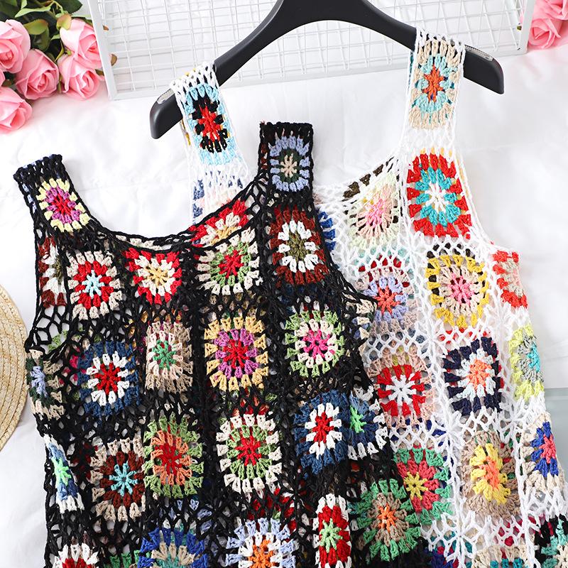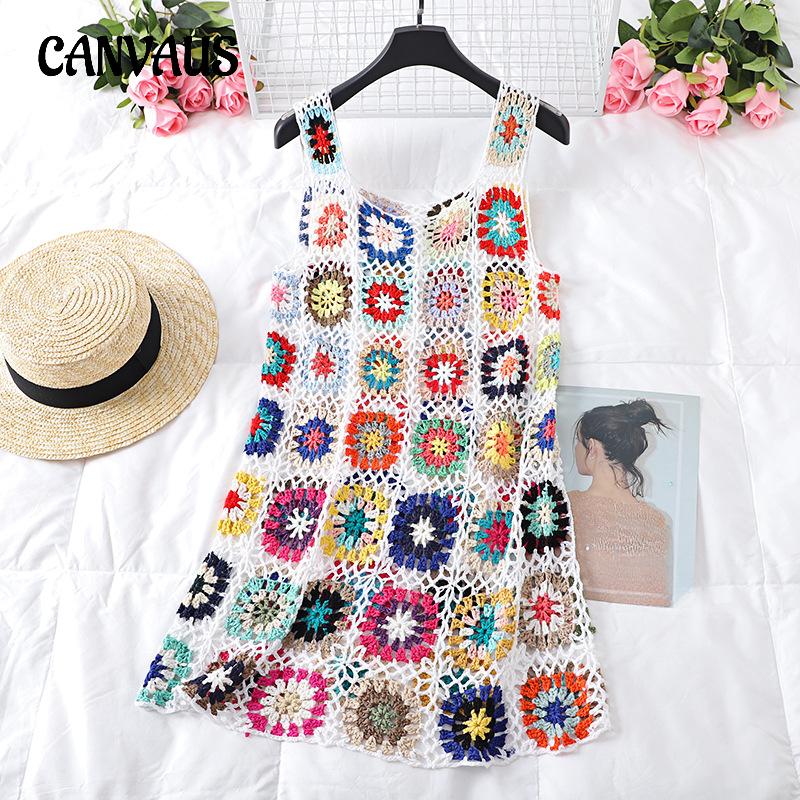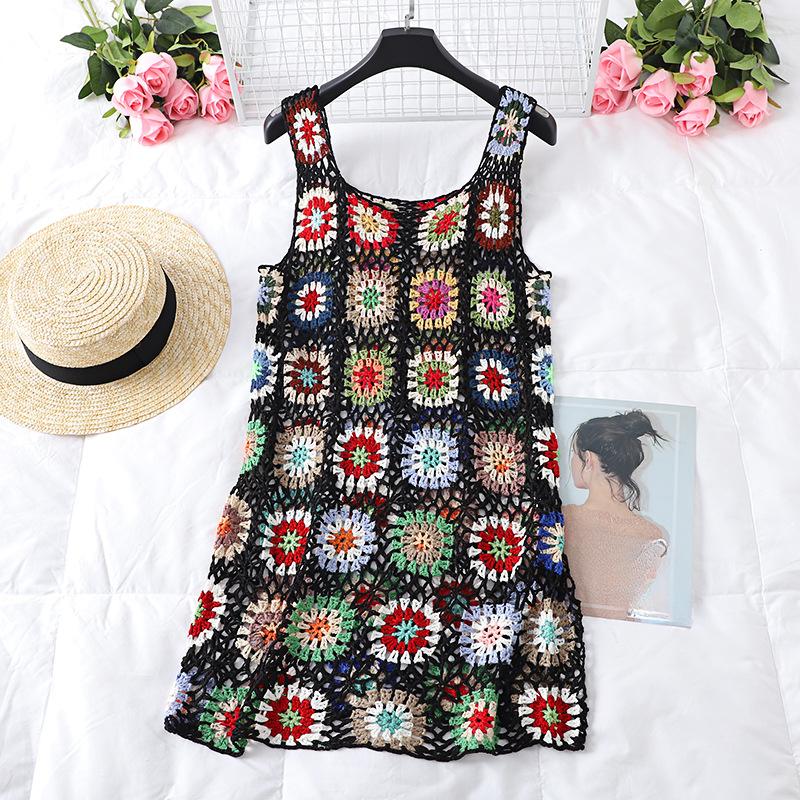 Женское богемное праздничное платье ручной работы крючком с v-образным вырезом и лямкой на шее, летнее сексуальное платье-жилет с ромбовидной решеткой, пляжное платье