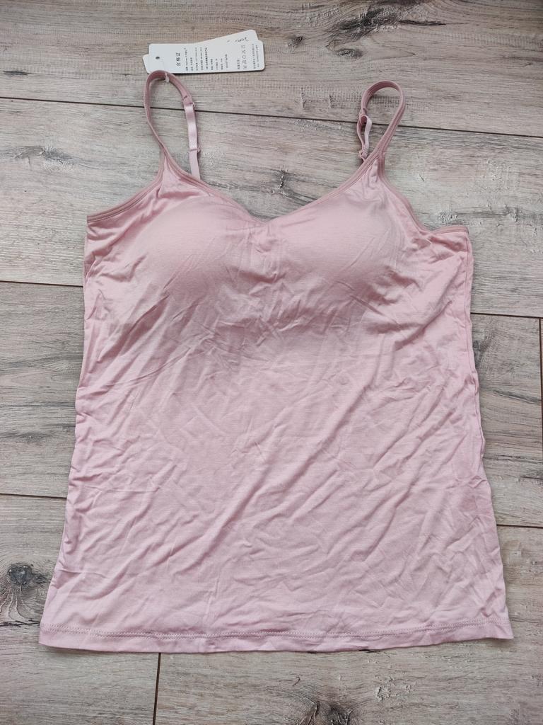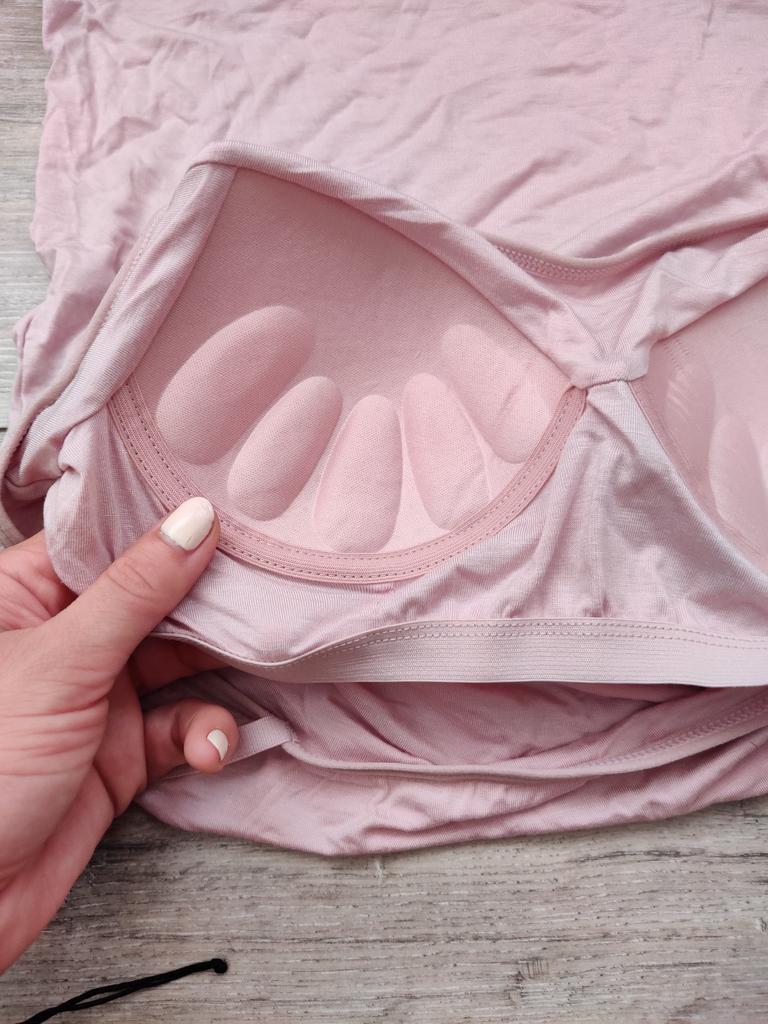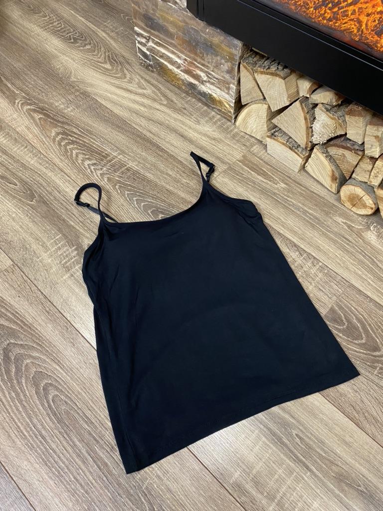 Майка с вшитым бюстгальтером Очень мягкая и приятная к телу ткань, лёгкая и холодит. Брительки регулируются, строчки ровные. Внутри вшитый бюстгальтер, поролон плотный к телу приятный. Ничего не давит, нет дискомфорта при носке, на лето очень удобно. Ткань хорошо тянется, неприятного запаха нет. На мне размер М сидит хорошо, не в обтяжку. Очень хочу заказать ещё такую серого цвета. Я довольна заказом. Рекомендую!