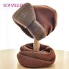 SOMALER Зимняя вязаная шапка с полями из цельного натурального норкового меха, женская шерстяная шапка, комплект с шарфом, теплая вязаная шапка