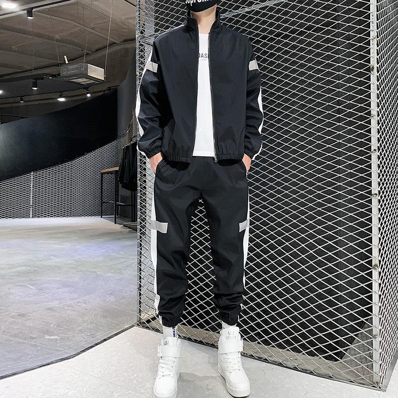 Мужской комплект спортивной одежды, весенне-осенний комплект, мужской спортивный костюм, лоскутная толстовка в стиле хип-хоп + брюки, мужская повседневная куртка, уличная одежда, спортивные костюмы
