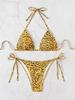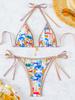 Женский купальник с цветочным бантом, сексуальная треугольная сумка, завязка сбоку, бикини с низкой талией, пляжная одежда, купальные костюмы