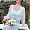 Абрикосовый, белый, черный, женский, с длинным рукавом, с открытым передом, прозрачное болеро, шифоновый кардиган с плечами, накидка для свадебного платья, накидка, накидка