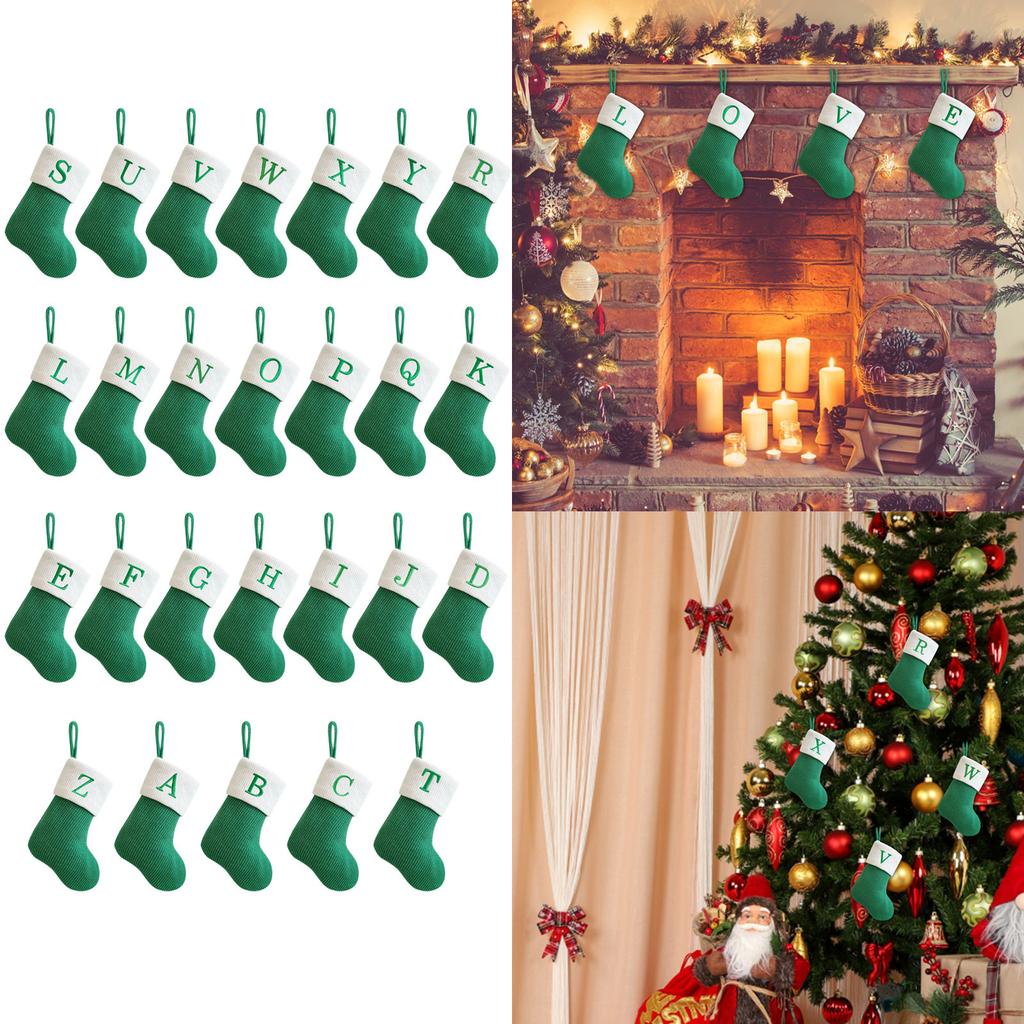 Рождественские чулки, маленькие вышитые буквы, вязаные рождественские подвесные чулки, украшения, декор для рождественской вечеринки