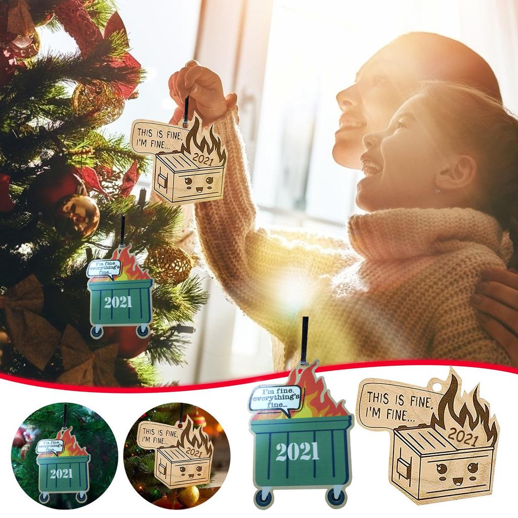 2021 Мусорный Контейнер Огонь Рождественский Орнамент Рождественская Елка Деревянная