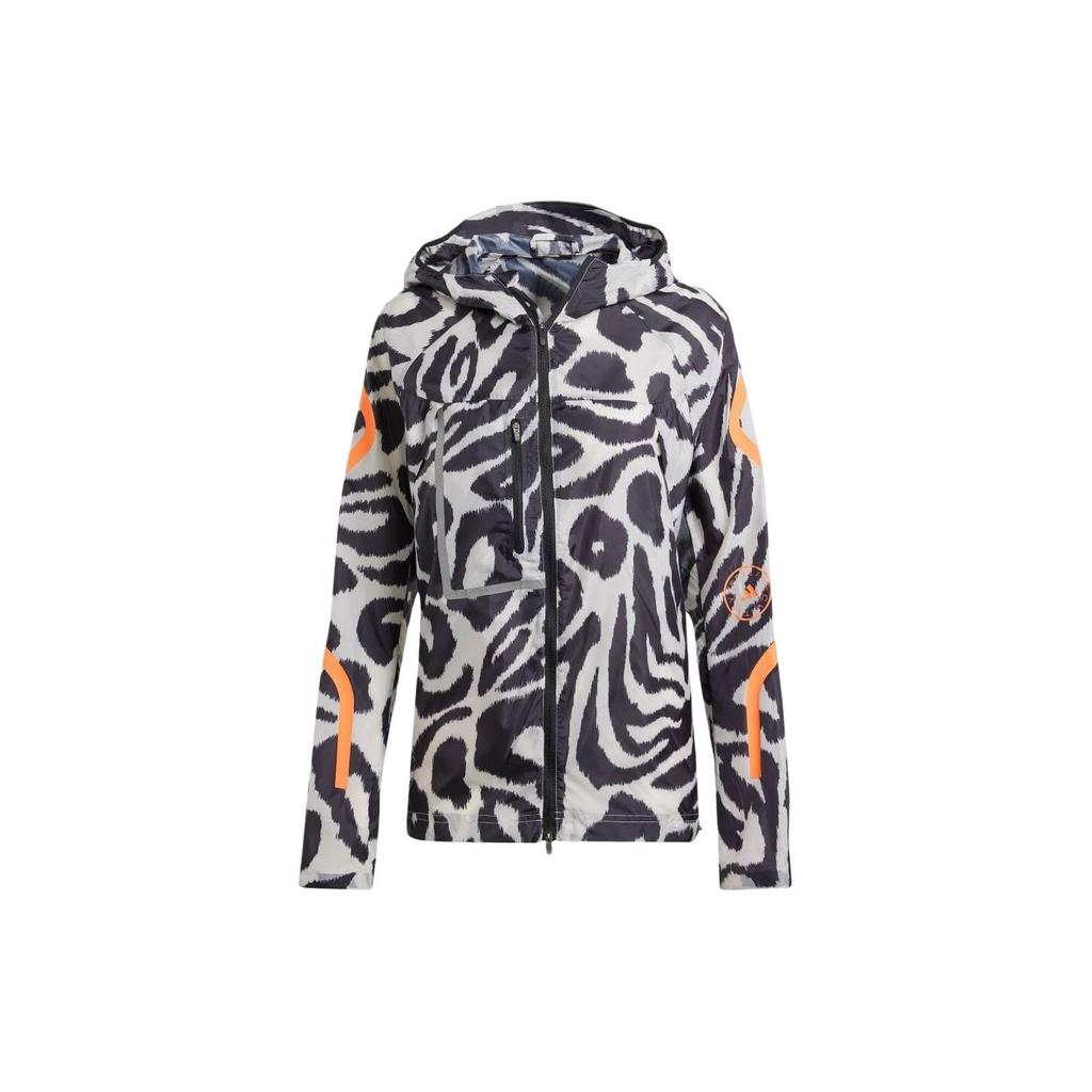 Adidas Приталенная куртка с капюшоном и длинными рукавами с принтом по всему лицу, женская верхняя одежда, черный цвет IQ4481