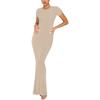 Женское модное и сексуальное однотонное длинное платье с круглым вырезом и короткими рукавами