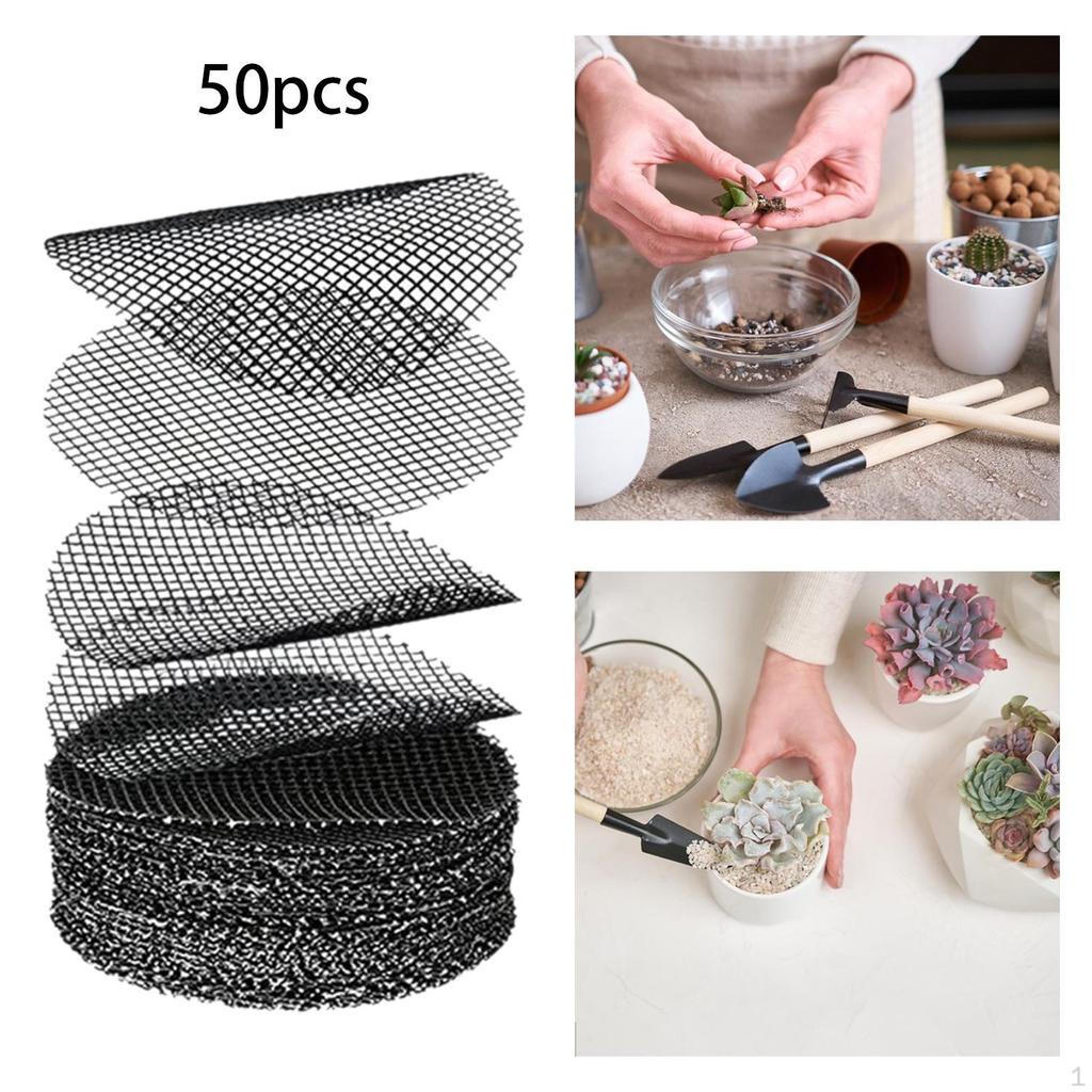 - 【Список пакетов】Вы получите 50 штук сетчатых подушечек для цветочных горшков.. Достаточно количества, чтобы удовлетворить ваши различные потребности в садоводстве в цветочных горшках своими руками.