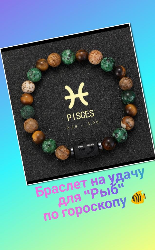 💚Браслет на удачу из натуральных камней по знаку Зодиака. На выбор, как и положено, 12 штук. 💚У меня "Рыбы" 🐠🐟🐬 💚Браслет выполнен в классическом стиле, собран на ювелирную резинку. Такие браслеты всегда в моде и не подвластны времени. 💚Камушки ровные, симпатичные, без сколов и потёртостей. Тигровый глаз с красивыми переливами. Есть пластиковая вставка с оттиском знака! 💚Браслет отличный! Надеюсь, теперь Удача теперь всегда будет рядом! 😂🤓😉🍀🍀🍀🍀🍀