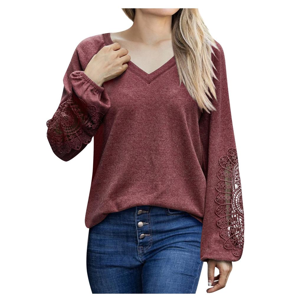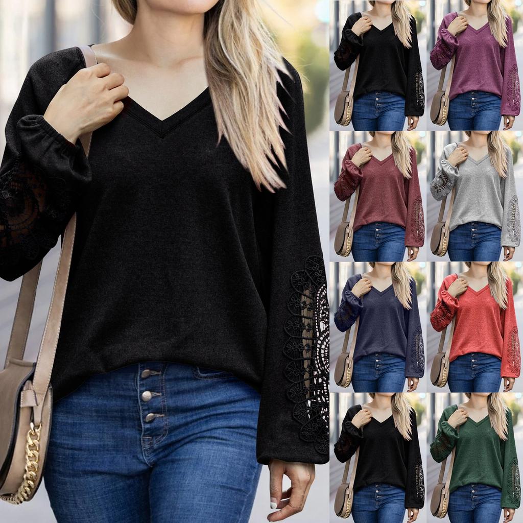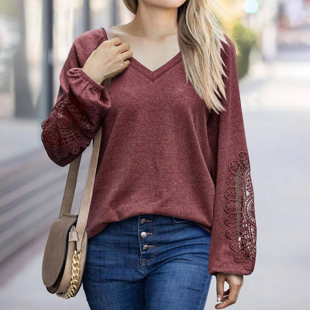 Женская мода осенне-зимний однотонный кружевной вязаный топ с v-образным вырезом и длинными рукавами