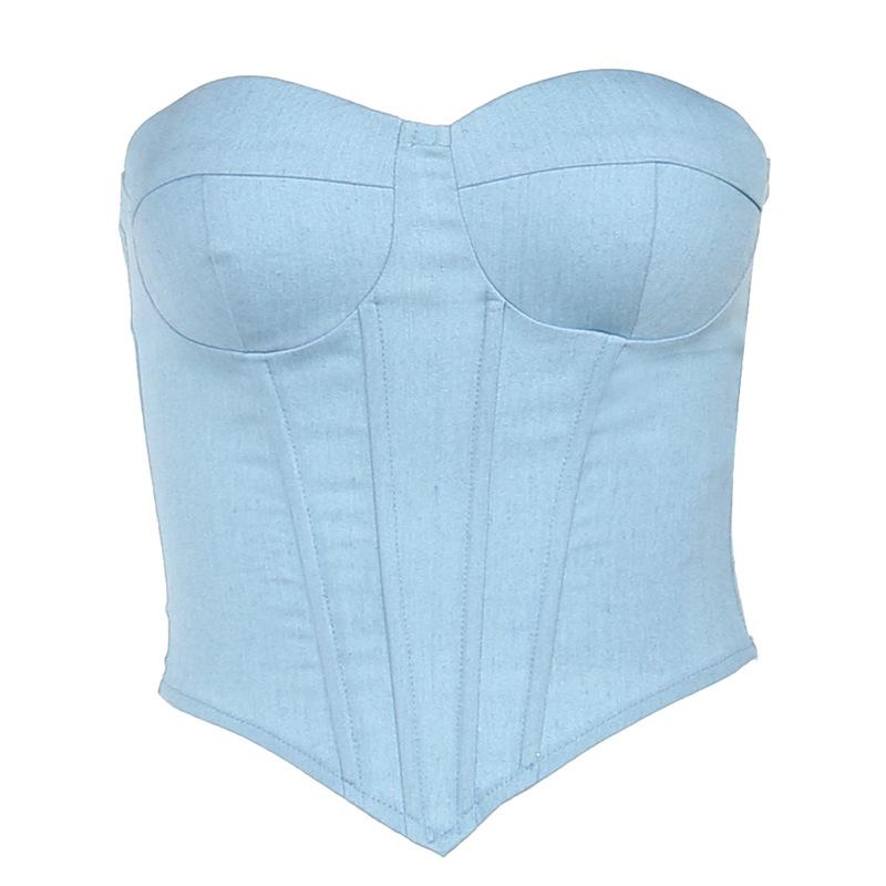 Женский модный топ с чашками из искусственного денима, топ Spice Girl с поясом на талии, топ с бюстом — купить товар онлайн с бесплатной доставкой по всему миру!