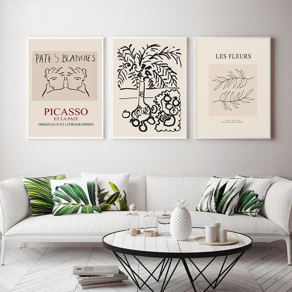 Абстрактный постер ПИКАССО середины века, ботаническая картина на холсте, нейтральная художественная печать, современная настенная картина для гостиной, домашний декор