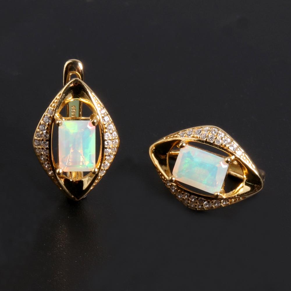 Элегантный дизайн, красочные серьги с ромбами из натурального опала, серебро 925 пробы, женский подарок на юбилей, банкет и день рождения