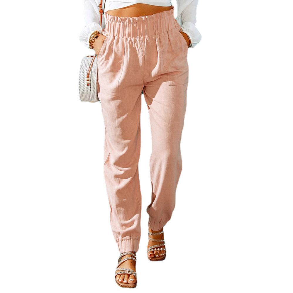 Женские спортивные штаны, новые весенние брюки с эластичным поясом и рюшами, брюки с высокой талией, женские повседневные брюки